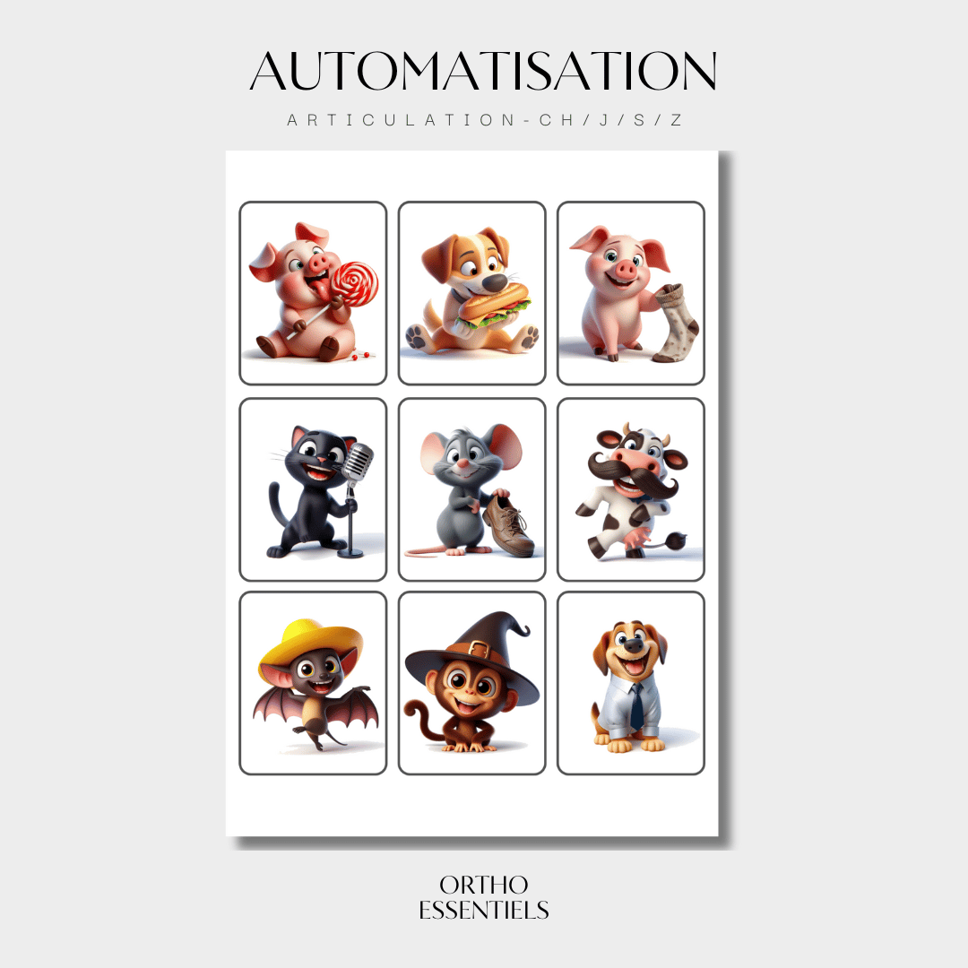 Un fichier ludique pour automatiser l'articulation des sons complexes CH, J, S, Z à travers :