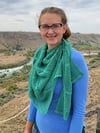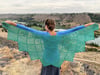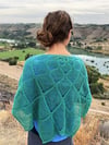 Worked from the center out Jade Dreamcatcher is a versatile lace shawl that can be made to suit nearly any gauge or amount of yarn. To adjust he size simply begin dividing for the points on any row that starts a new repeat.
