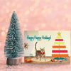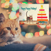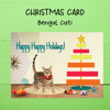 This is an adorable Christmas Holiday card that features a fancy Bengal cat enjoying his presents!