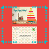 Christmas Holiday Card! Retro/midcentury modern with brown Bengal Cat! Instant download w/ unlimited uses! Envelope template included.
