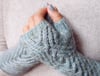 Undulation Mittens were inspired by the beautiful ripple effect a single drop causes on the water surface, the soft and powerful motion of currents, the mesmerizing patterns of moving waves. The pair is decorated with intertwining cables resembling the continuous dance of ocean waters. Mittens will keep their wearer cozy while reminding one to pause and admire how nature moves around, how gentle and inspiring its patterns are.