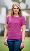 I love this lace pattern! There's a lot of detail in the lace, so I chose to keep the shape of the piece very simple. The body is worked in the round to the armholes, then stitches are cast on for the sleeves, and the back and front are worked separately to the beginning of shoulder shaping. The shoulders are shaped using short rows or bind-offs – your choice.