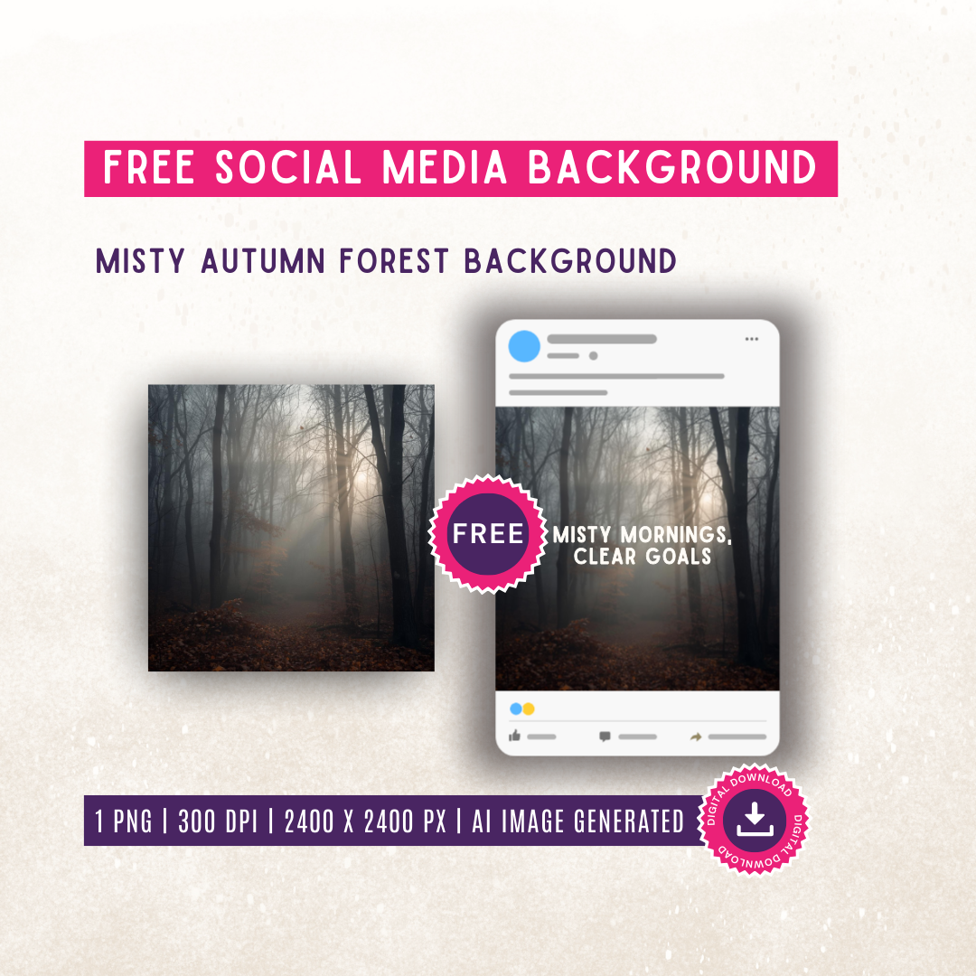 Mysterious and atmospheric. This free background captures a misty autumn morning in the forest, with soft light breaking through the trees and fallen leaves on the path. Perfect for moody seasonal posts, quotes, or adding an atmospheric touch to your designs.