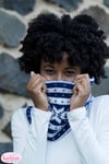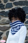 Fana is a reversible cowl featuring traditional sweater motifs from the Fana region of Norway. These are customarily done in stranded knitting in red or green on white, but here are worked in the Double Knitting technique, with marine blue reflecting the coastal origins of the design.