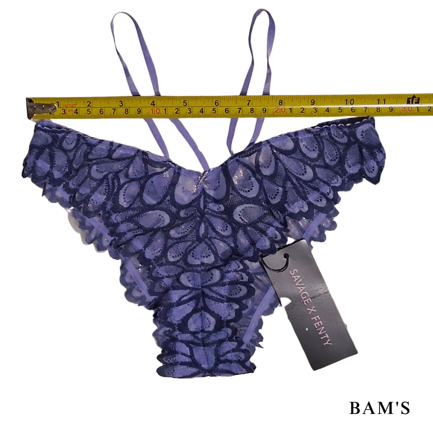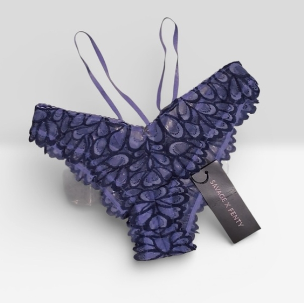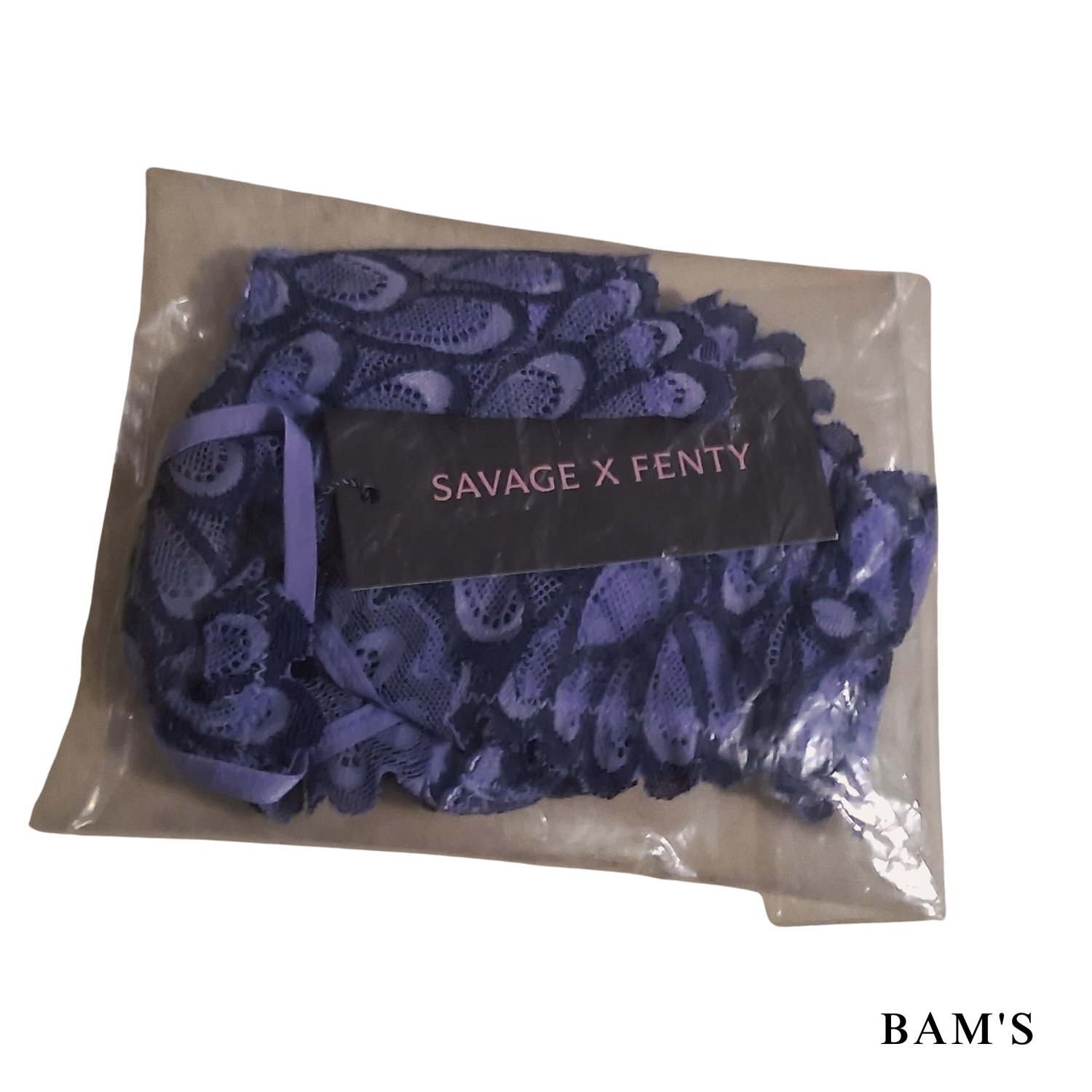 Brand new Savage X Fenty lace thong panty in a gorgeous deep purple tone — never worn and still in original packaging.