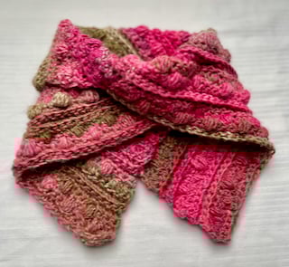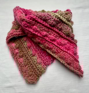 Nákrčník je háčkovaný po řadách, nikoli v kruhu, a výsledný obdélník je po stranách sešit netradičním, zvlněným a plastickým způsobem. Tato originální konstrukce není klasický "tunel", ale díky zajímavému tvarování a textuře se dá nosit na více způsobů, čímž se stává nejen krásným barevným doplňkem, ale i variabilním a hřejivým společníkem. Díky jednoduchému opakování vzoru a jasně definovaným řadám je tento návod vhodný i pro začátečníky!