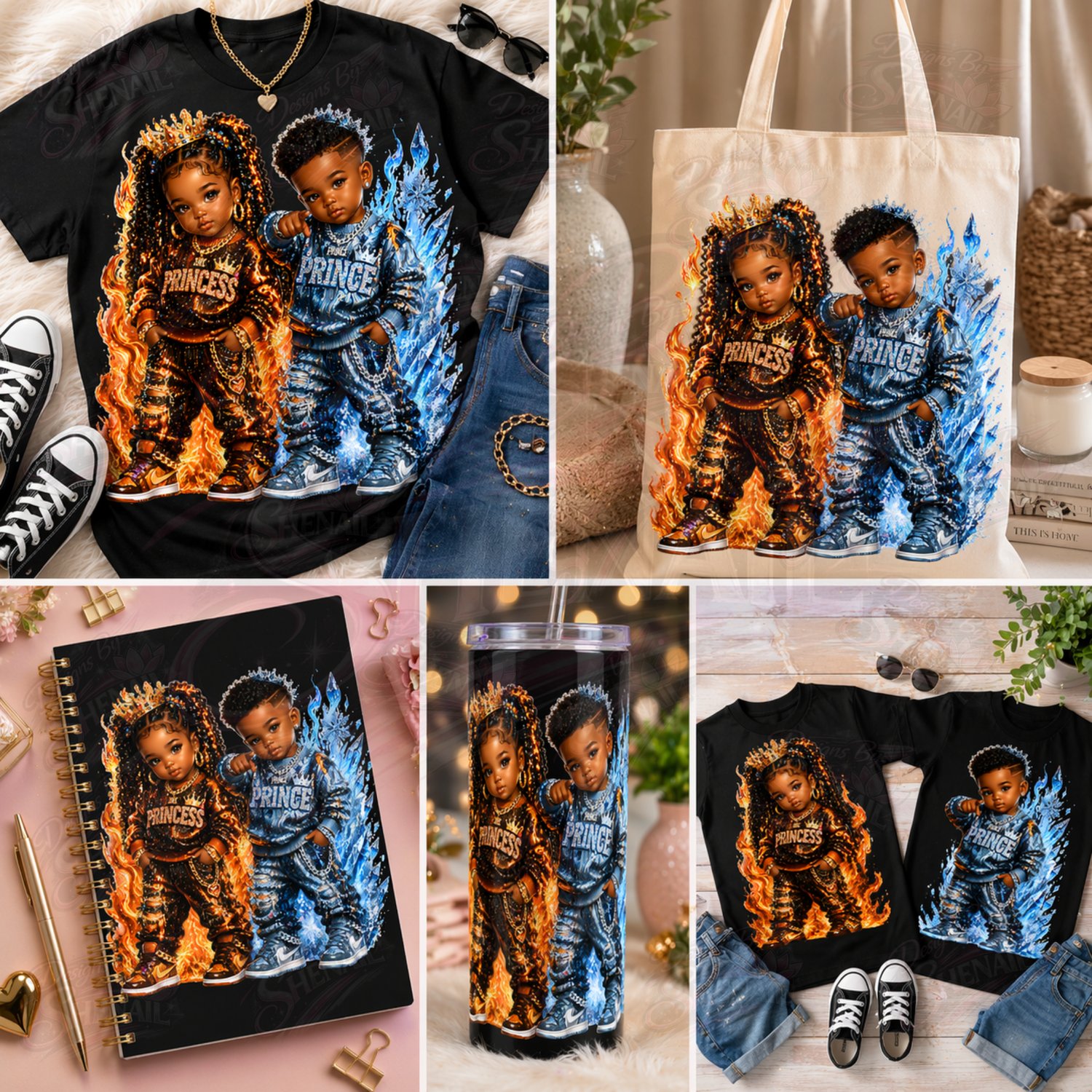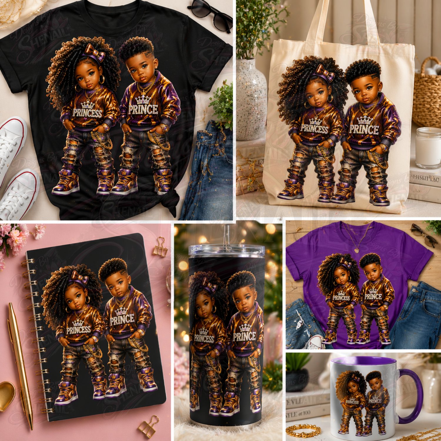 Level up your kids’ designs with this bold and stylish 9-piece royal kids bundle! Featuring adorable, high-fashion cartoon kids in “lil King” and “lil Queen” styles, this collection brings attitude, confidence, and drip to every creation.