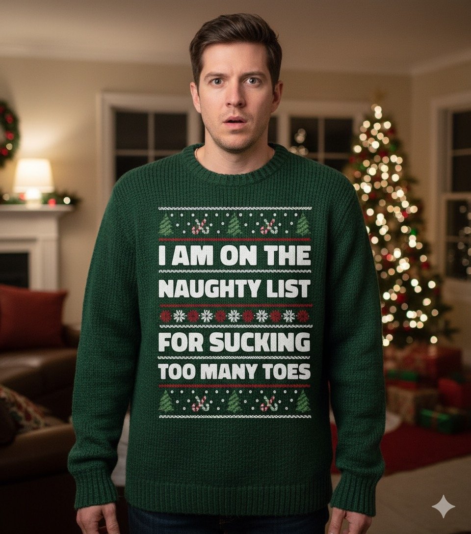 : "I Am On The Naughty List For Sucking Too Many Toes" Bundle | Funny Adult Ugly Christmas Sweater Cut File for Cricut & Silhouette