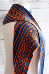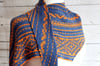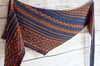 Iberian Dreams is a long, shallow, asymmetrical triangular shawl knit from end to end without a single purl stitch. The colourful patterns are created with slipped stitches so you are only ever working with one colour yarn at a time.