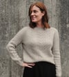 Low Tide is a textured garment, featuring combinations of eyelet lace and cables. The textured design is inspired by the ripples of sand, tiny rivulets of water and scatterings of pebbles and shells left on the beach by a receding tide.