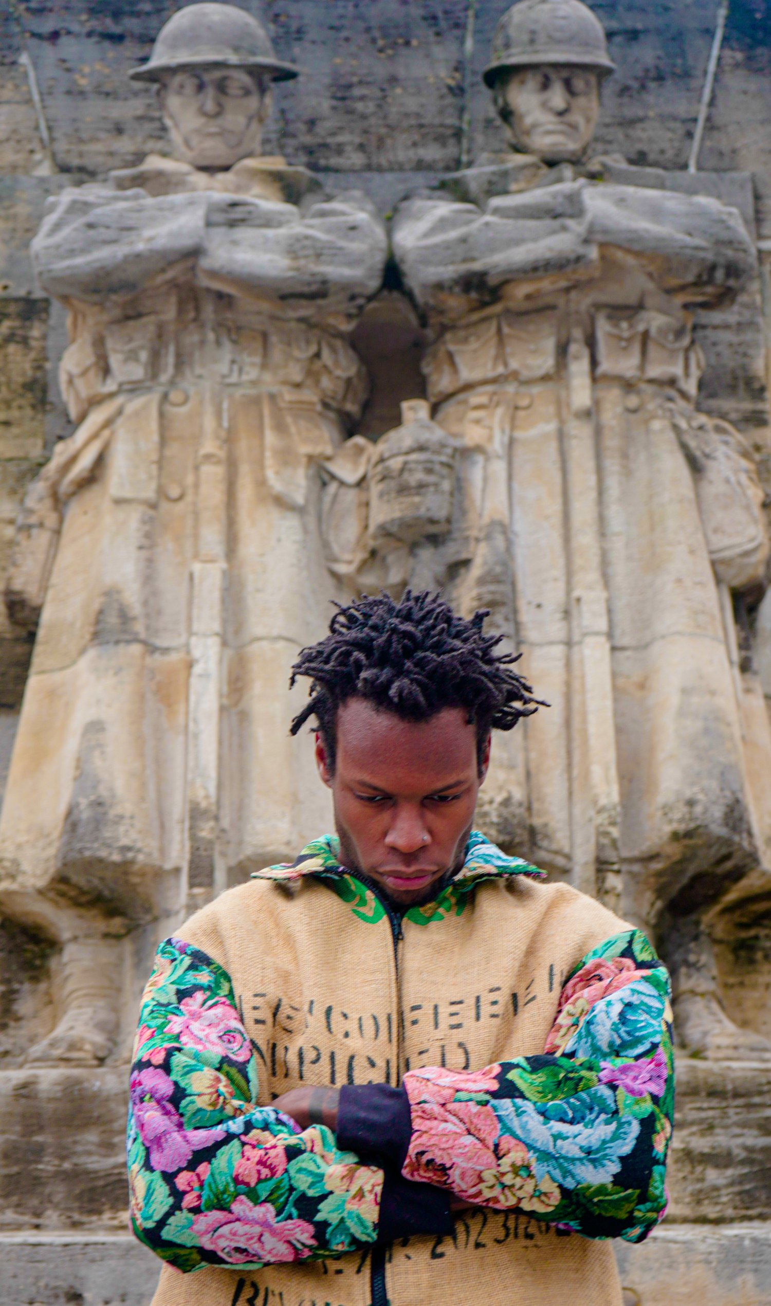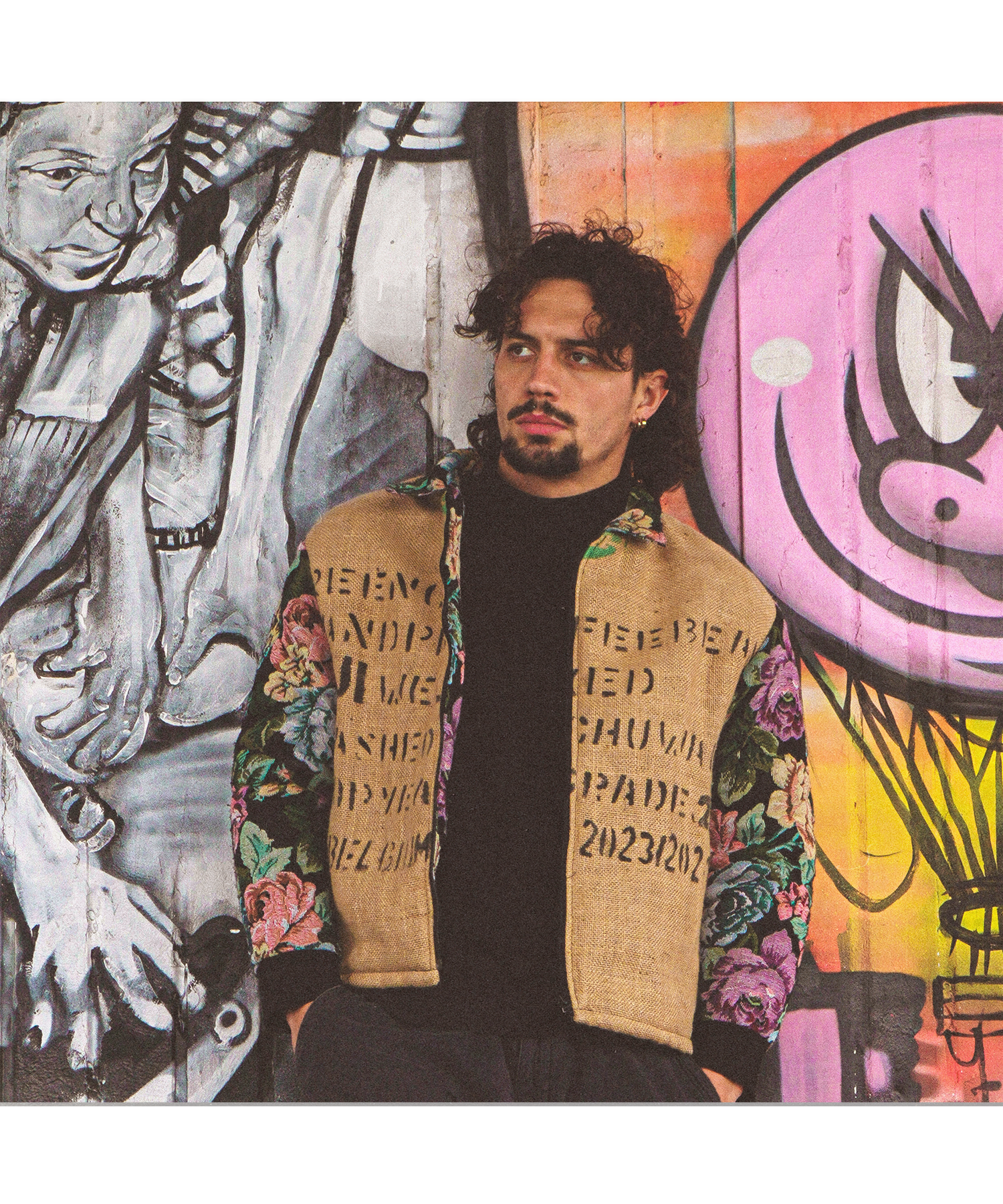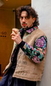 Fabric composition: reclaimed jute coffee sacks and woven tapestry fabric.
