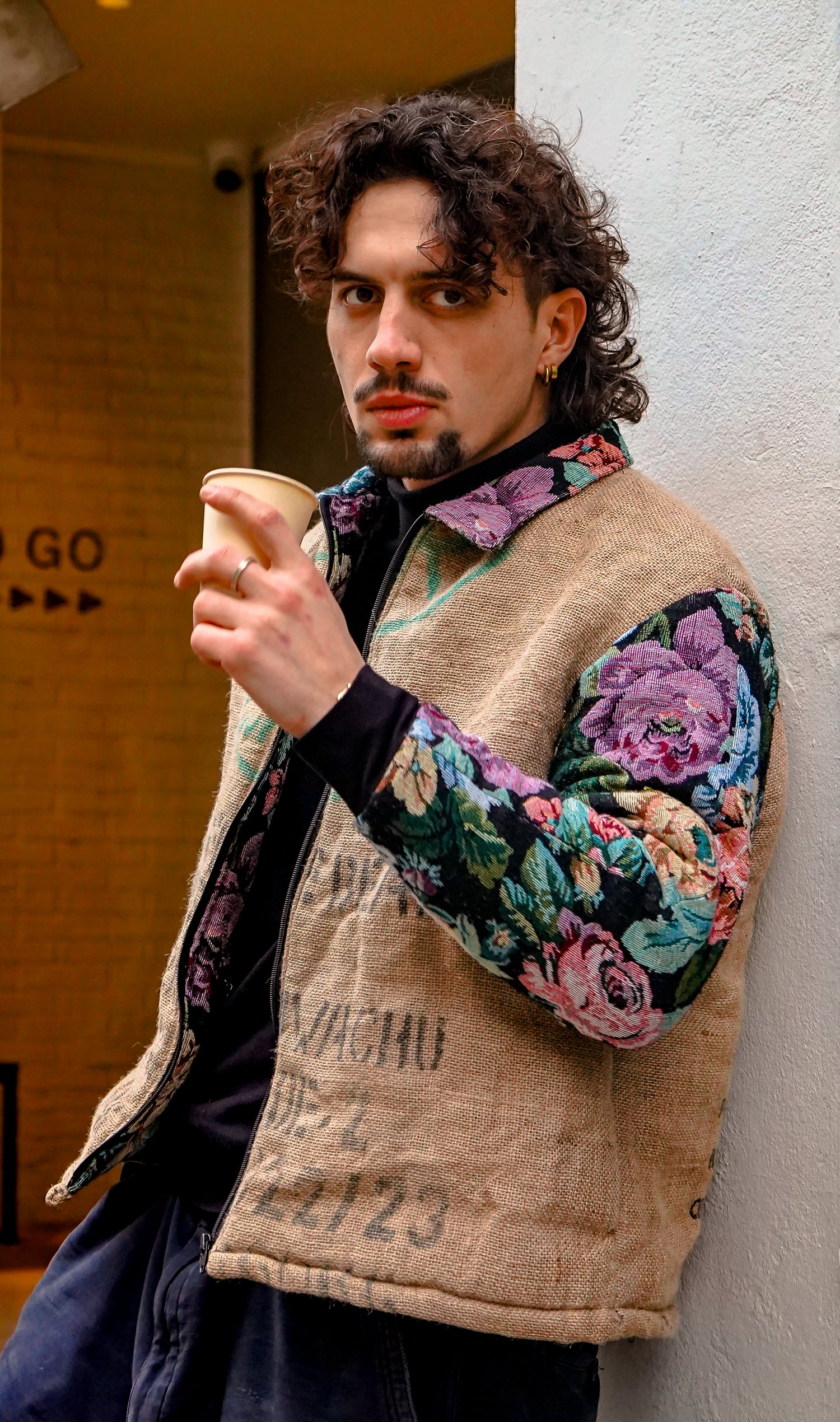 Constructed from reclaimed coffee sacks with original prints at front and back.