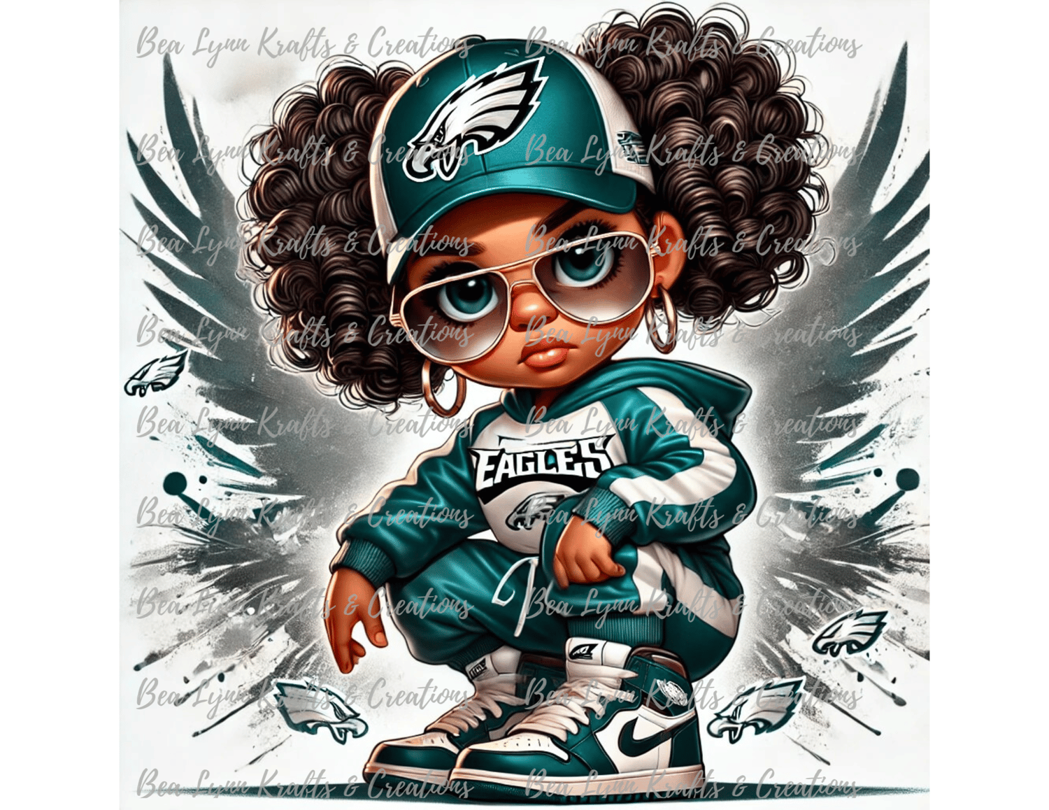 Show off your Eagles pride with this stylish and spirited Philadelphia Eagles fan digital PNG! Featuring a trendy fan character decked out in Eagles apparel, complete with a cap, oversized shades, and iconic wings, this transparent-background design is perfect for adding flair to your creative projects. Whether you're crafting T-shirts, hoodies, mugs, posters, stickers, or other fan gear, this image is a must-have for your collection.