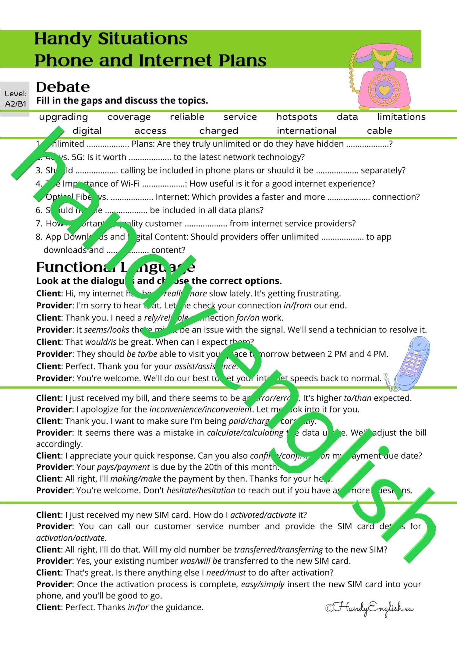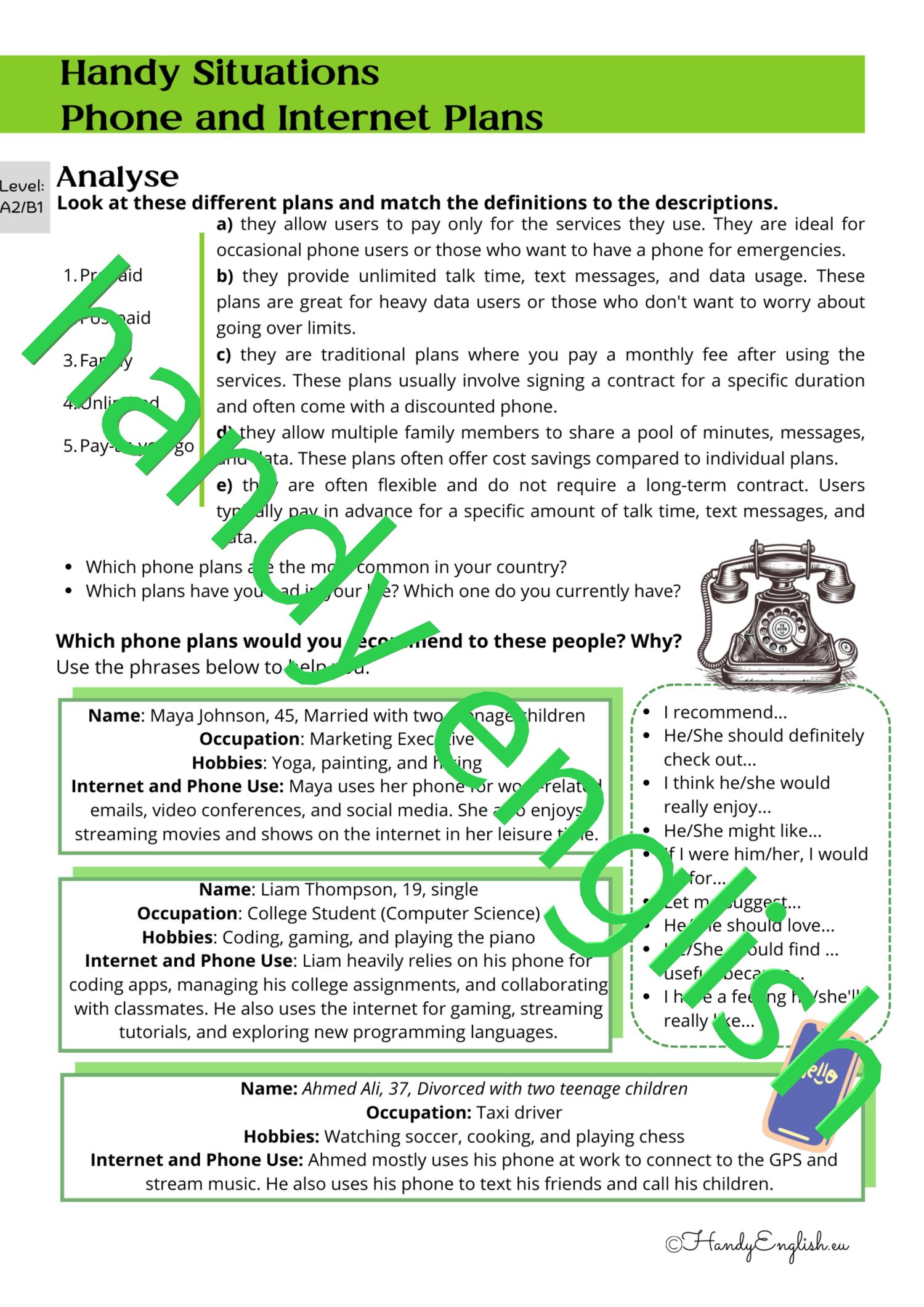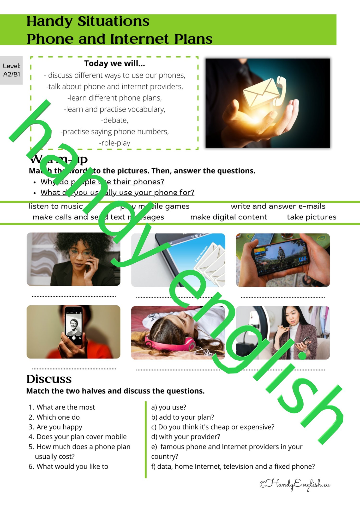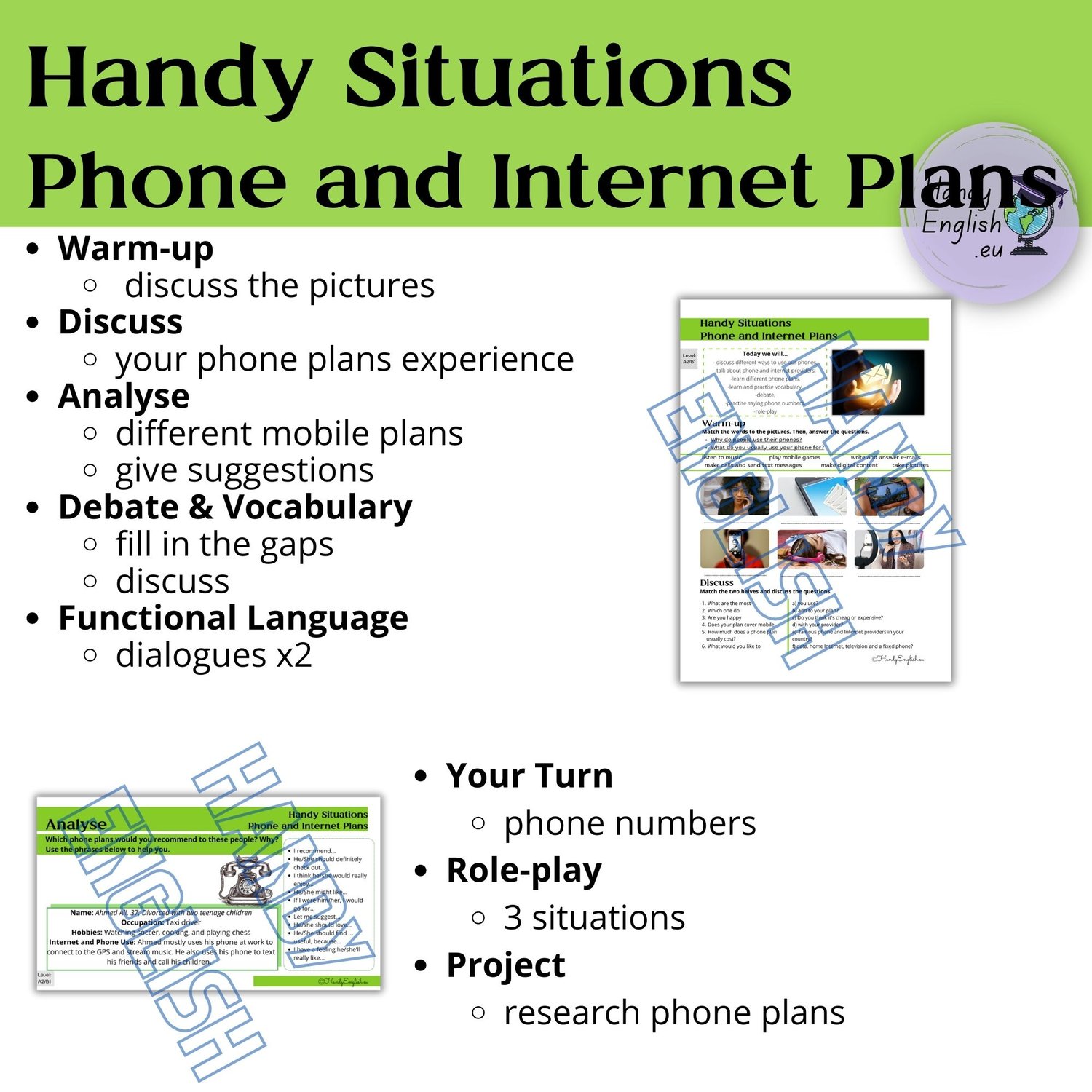 It is strictly forbidden to copy, resell or share this lesson plan without written permission from Handy English.