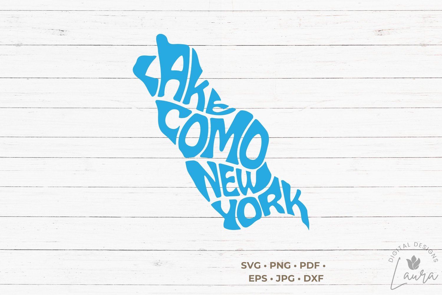 Lake Como New York word art in the shape of the lake, svg cut file