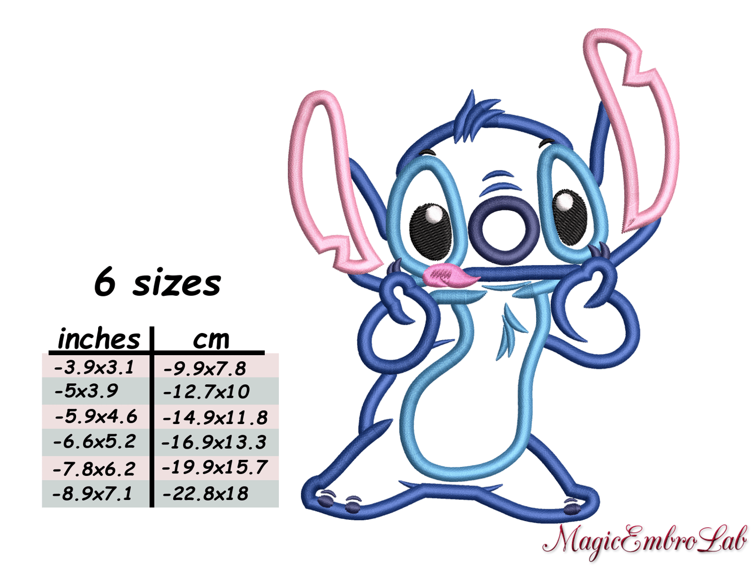 Stitch APPLIQUE, 6 sizes, Instant Download