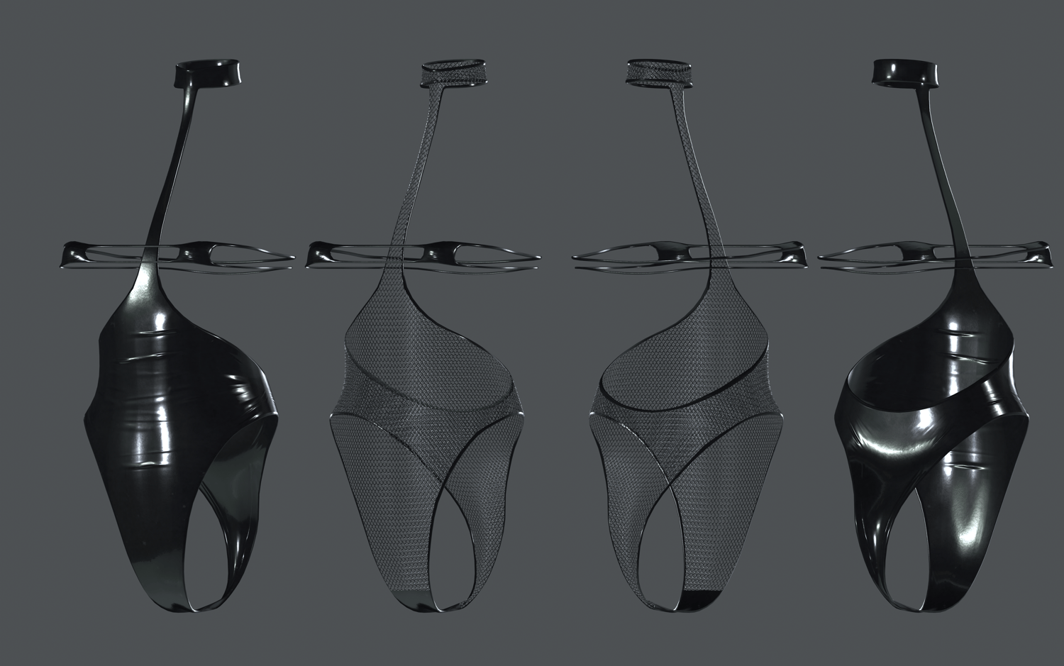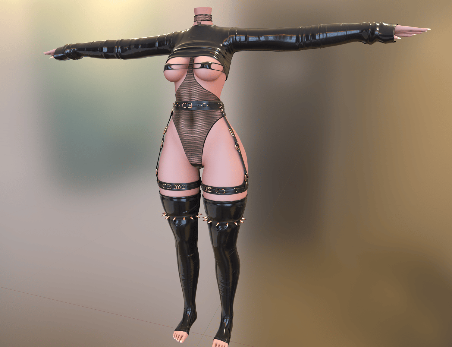 - 4 Materials (Bodysuit/Bra, Garter/Stockings, Metal, Top)