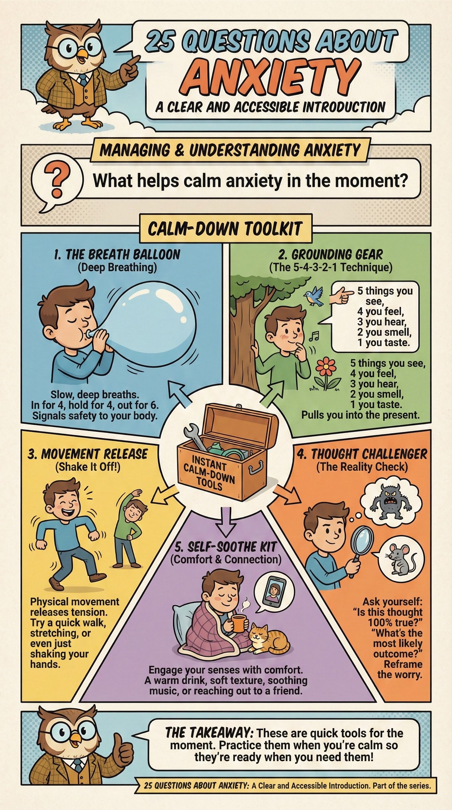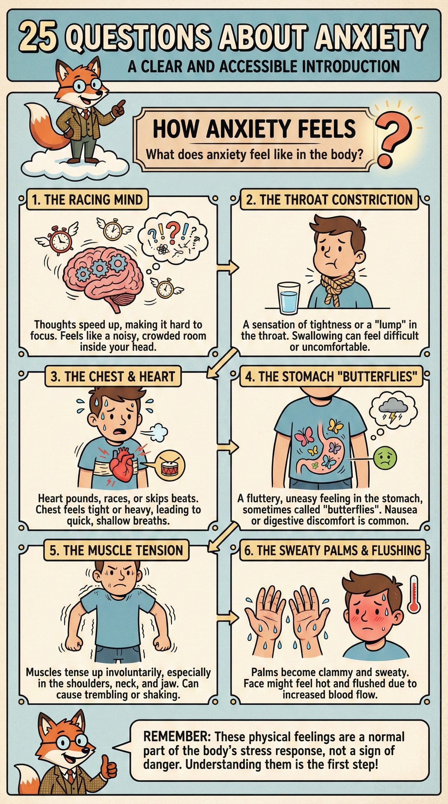 25 Questions About Anxiety is a beautifully illustrated educational book designed to help you understand what anxiety is, how it works, and how it affects thoughts, emotions, and behavior.
