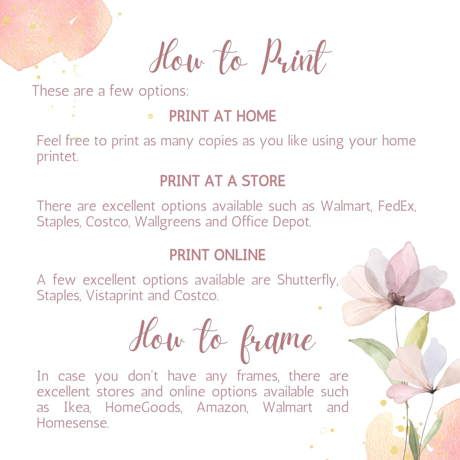 A Zipped folder containing 5 high-quality PDF digital files for your art printable will be provided to you, along with a separate instructions file.