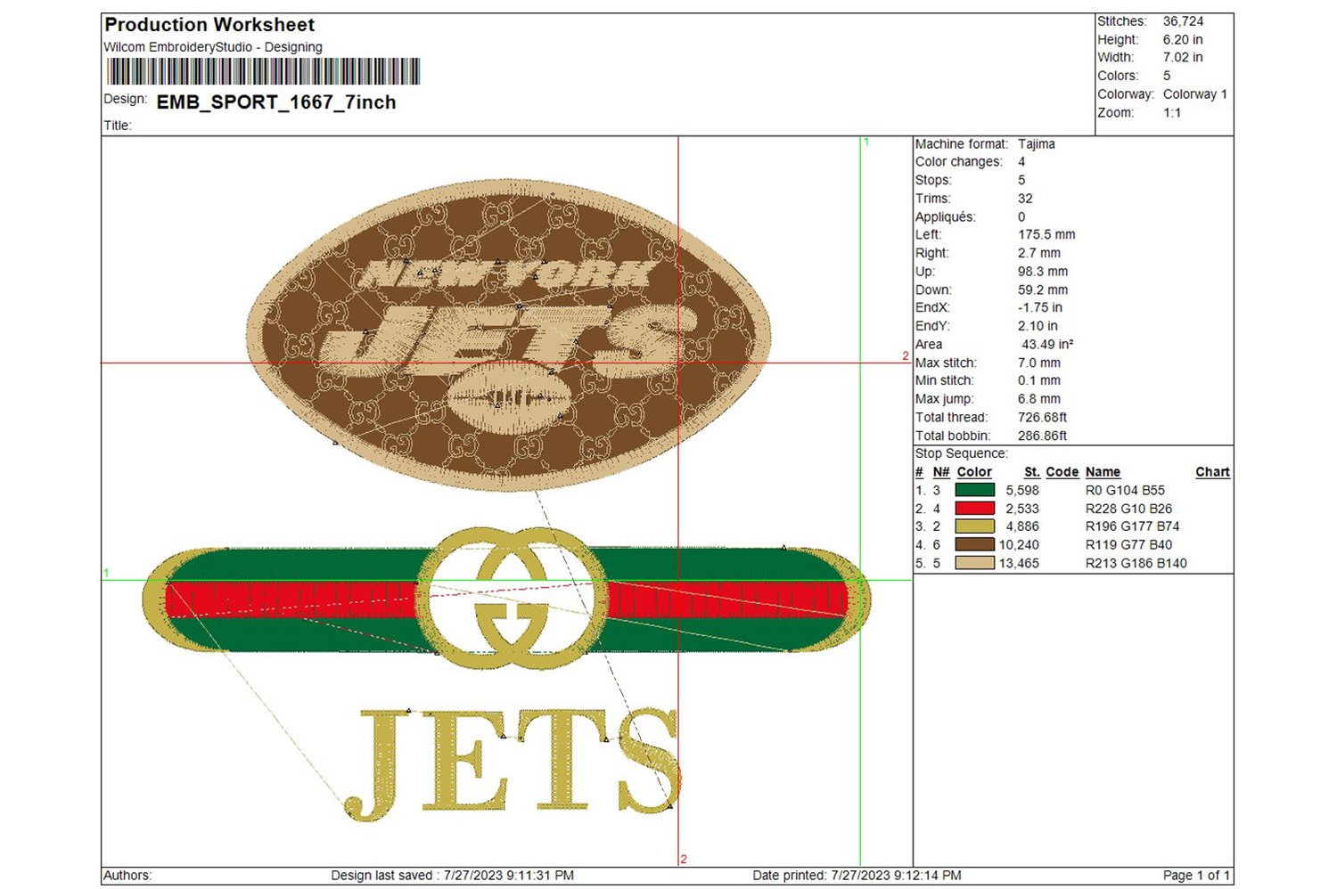 Guc.ci New York Jets Logo Embroidery Design Files, NFL Jets, NFL Logo Embroidery Files, NFL New York Jets Machine Embroidery Design, Digital Downlo