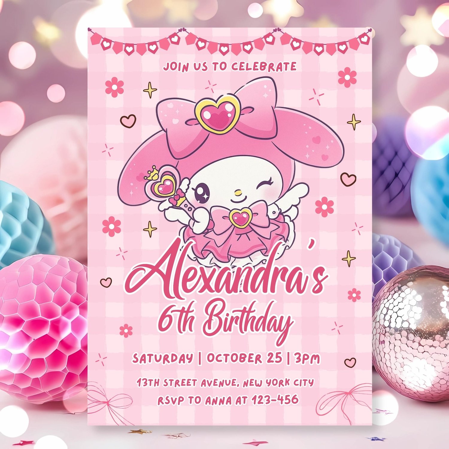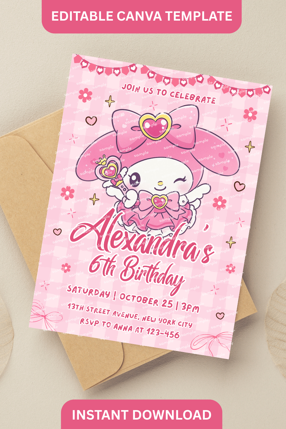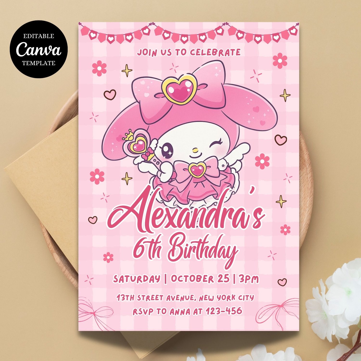 Editable My Melody Birthday Invitation Template | Cute Sanrio Party Invite | Canva Printable & Digital