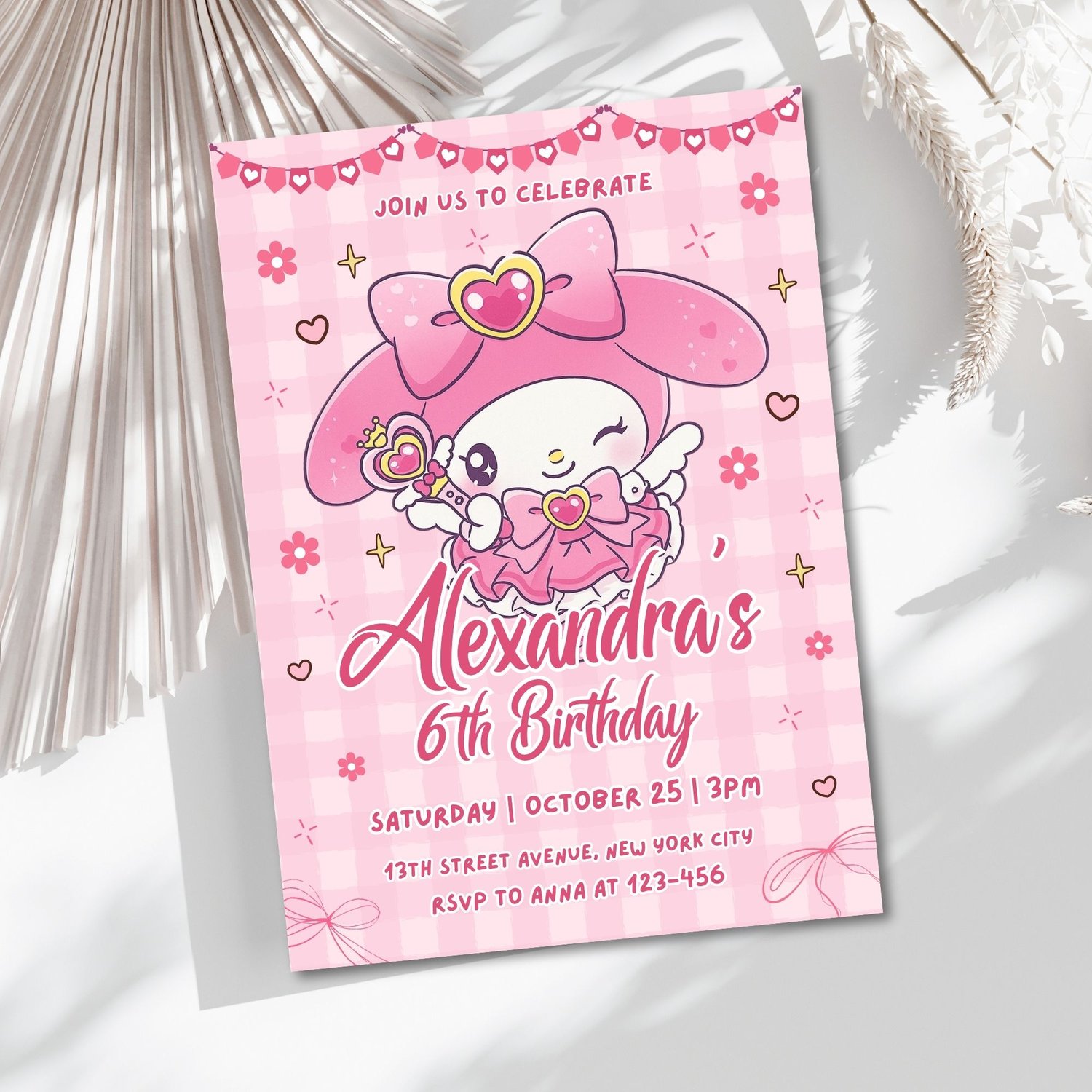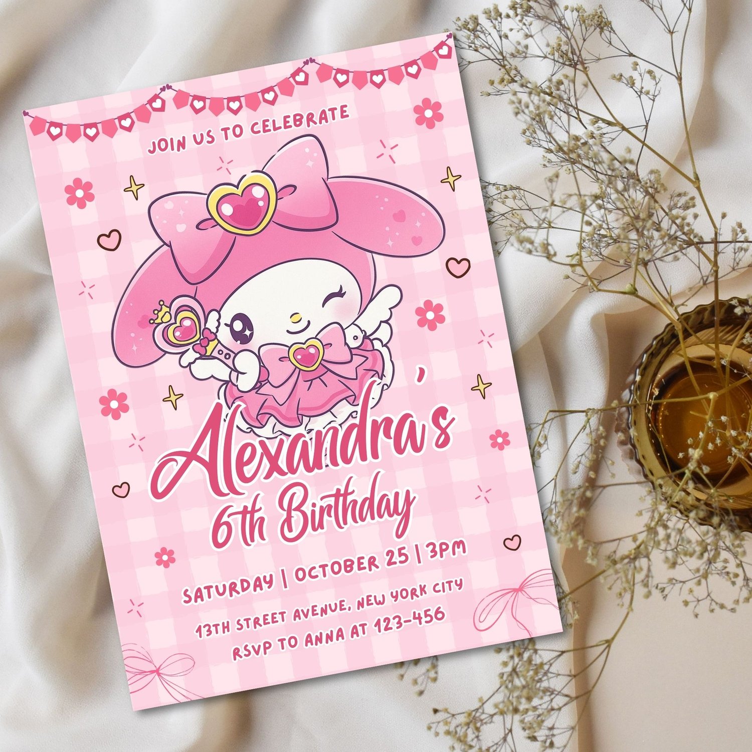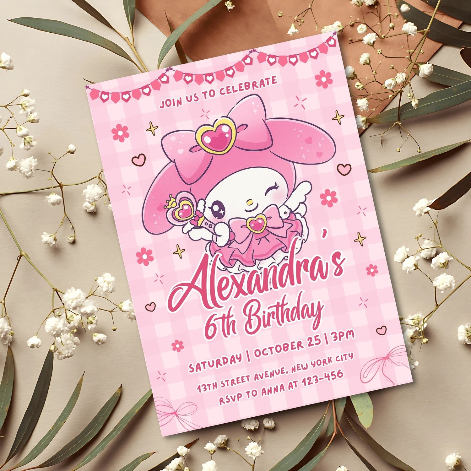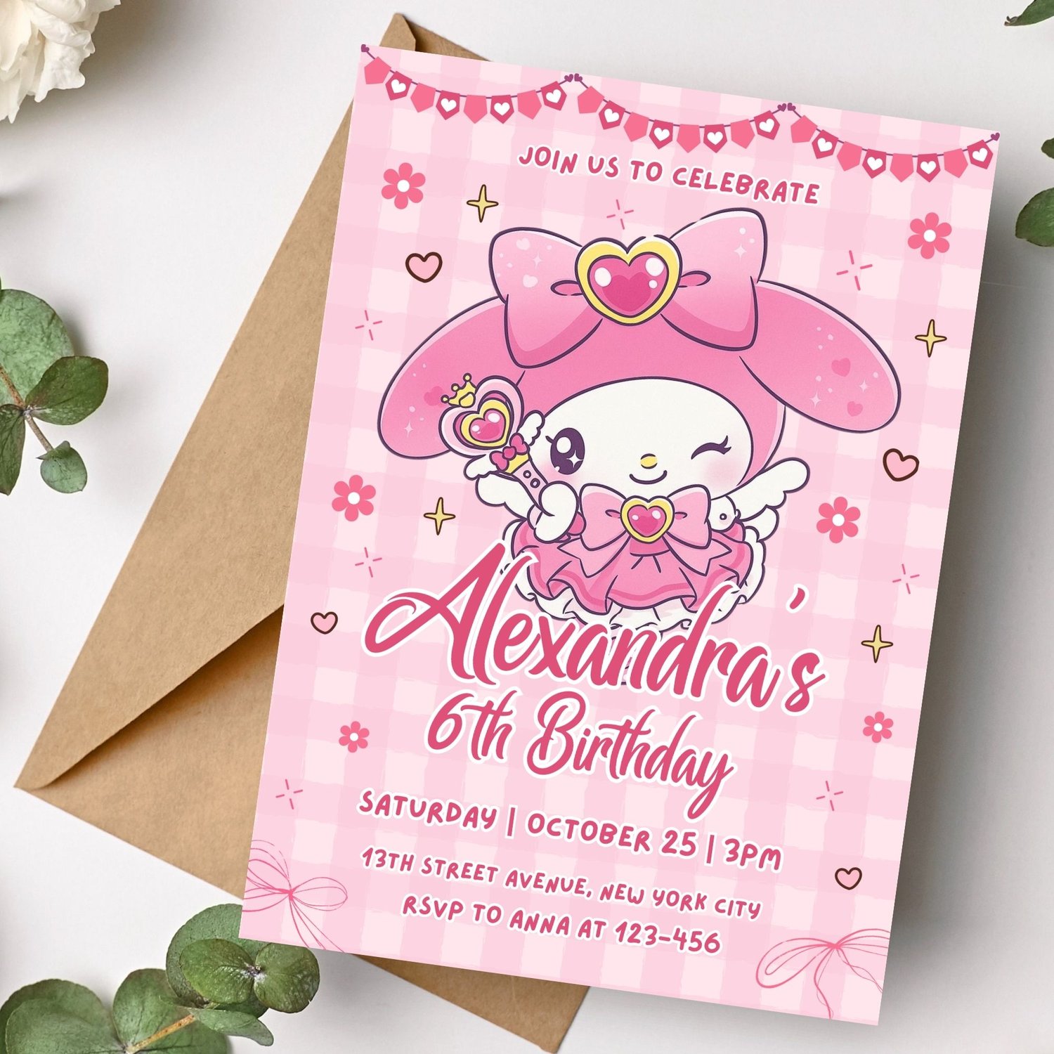 Editable My Melody Birthday Invitation Template | Cute Sanrio Party Invite | Canva Printable & Digital