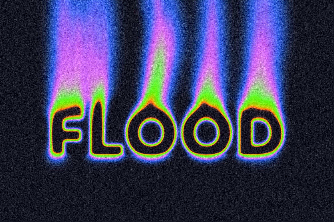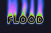 Styled with a bold, smooth typeface surrounded by a radiant, multicolored thermal glow. The colors transition from neon green and yellow at the edges to pink, purple, and deep blue as they extend upward, creating a heat-map or flame-like gradient.