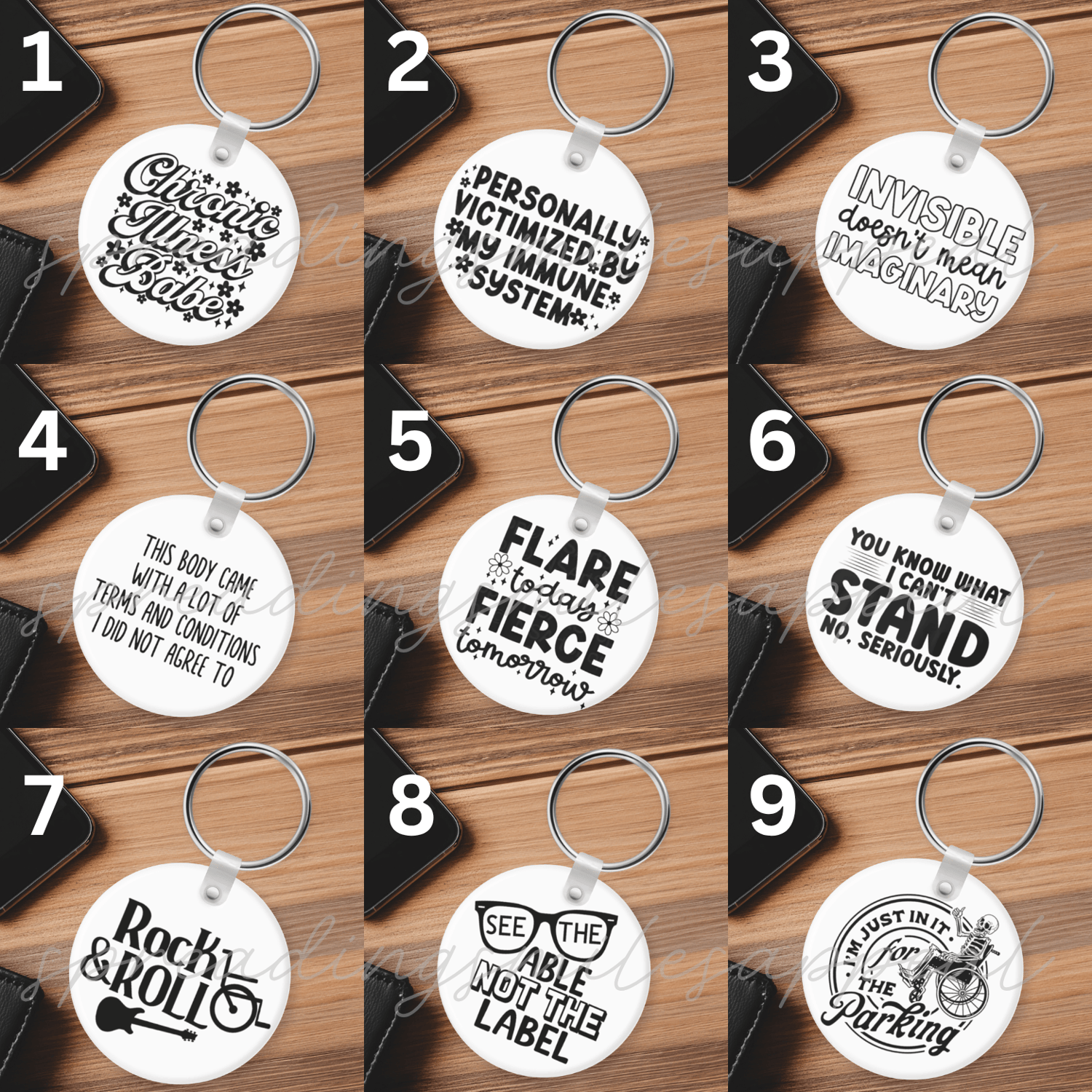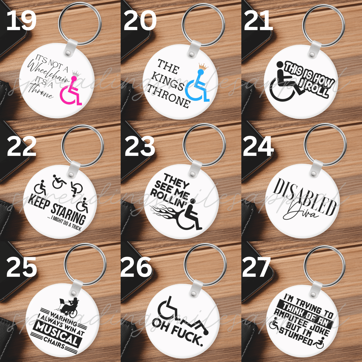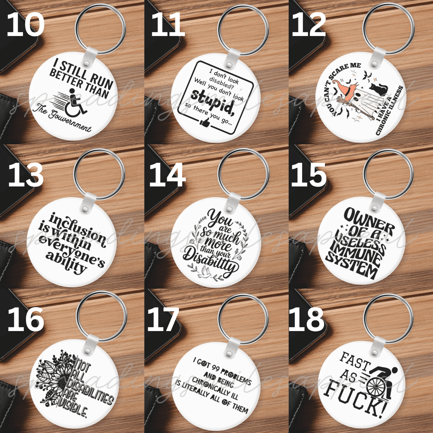 5CM ACRYLIC PRINTED DISABILITY THEMED KEYRING