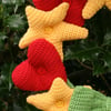 Dieser Kranz mit Herzen und Sternen wurde besonders für Anfänger designed. Er wird nur mit festen Maschen, etwas Formgebung und verkürzten Reihen gehäkelt.