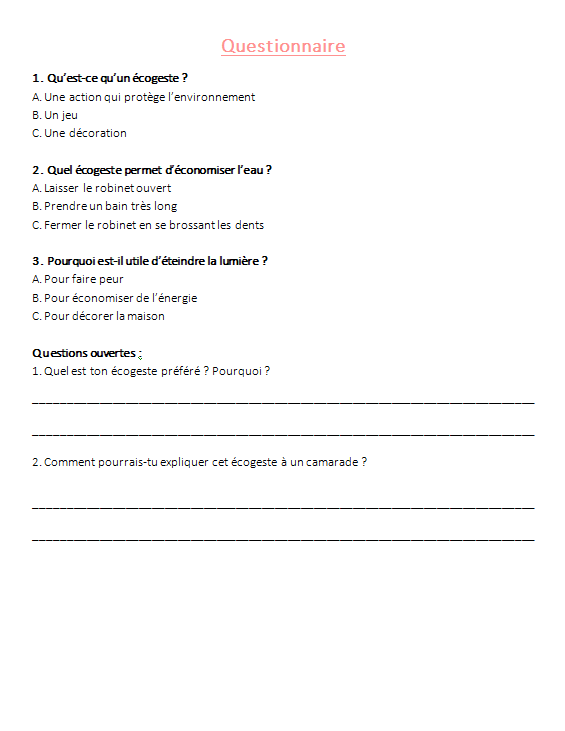 - Un questionnaire élÚve (QCM + questions ouvertes)