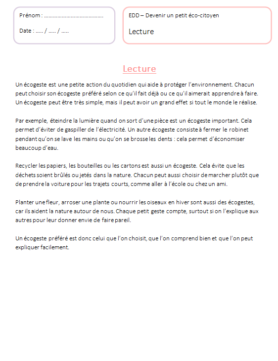 EDD - Cycle 2 - Devenir un petit éco-citoyen