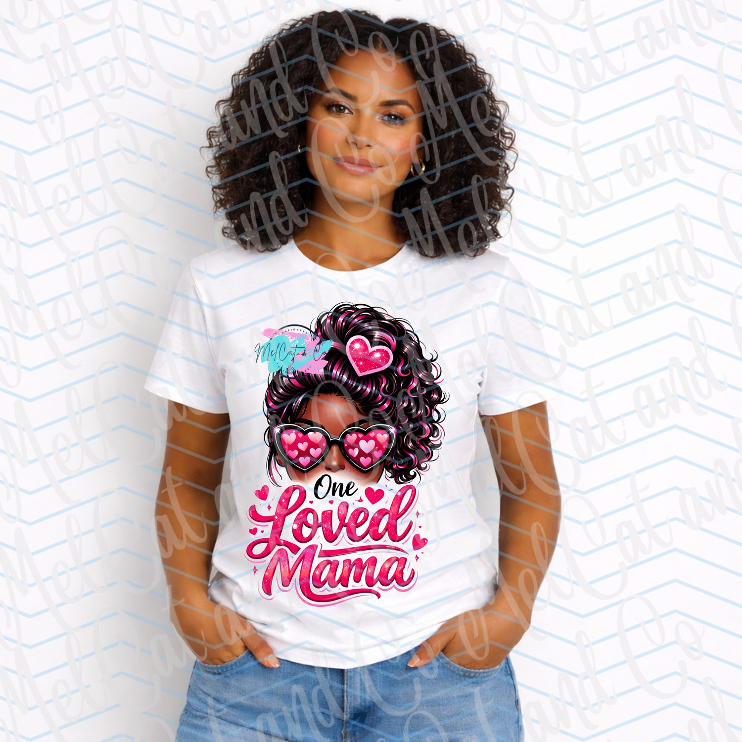 The “One Loved Mama” digital design is a bold, glam celebration of motherhood — available in versions featuring both African American and Caucasian beauty styles so every mama can feel seen, stylish, and celebrated.