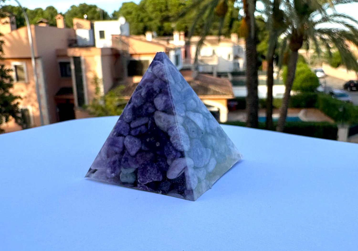 Ein Orgonit ist eine Art Pyramide, gefüllt mit Edelsteinen zu den jeweiligen Themen. Er besteht aus Epoxidharz und es daher sehr beständig!