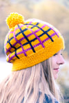 Techniques & Skills Used: knit/purl, cable CO, decreasing, knitting in the round; this pattern includes written instructions, as well as a chart and table for the plaid; a video tutorial is provided for the non-stranded plaid technique.