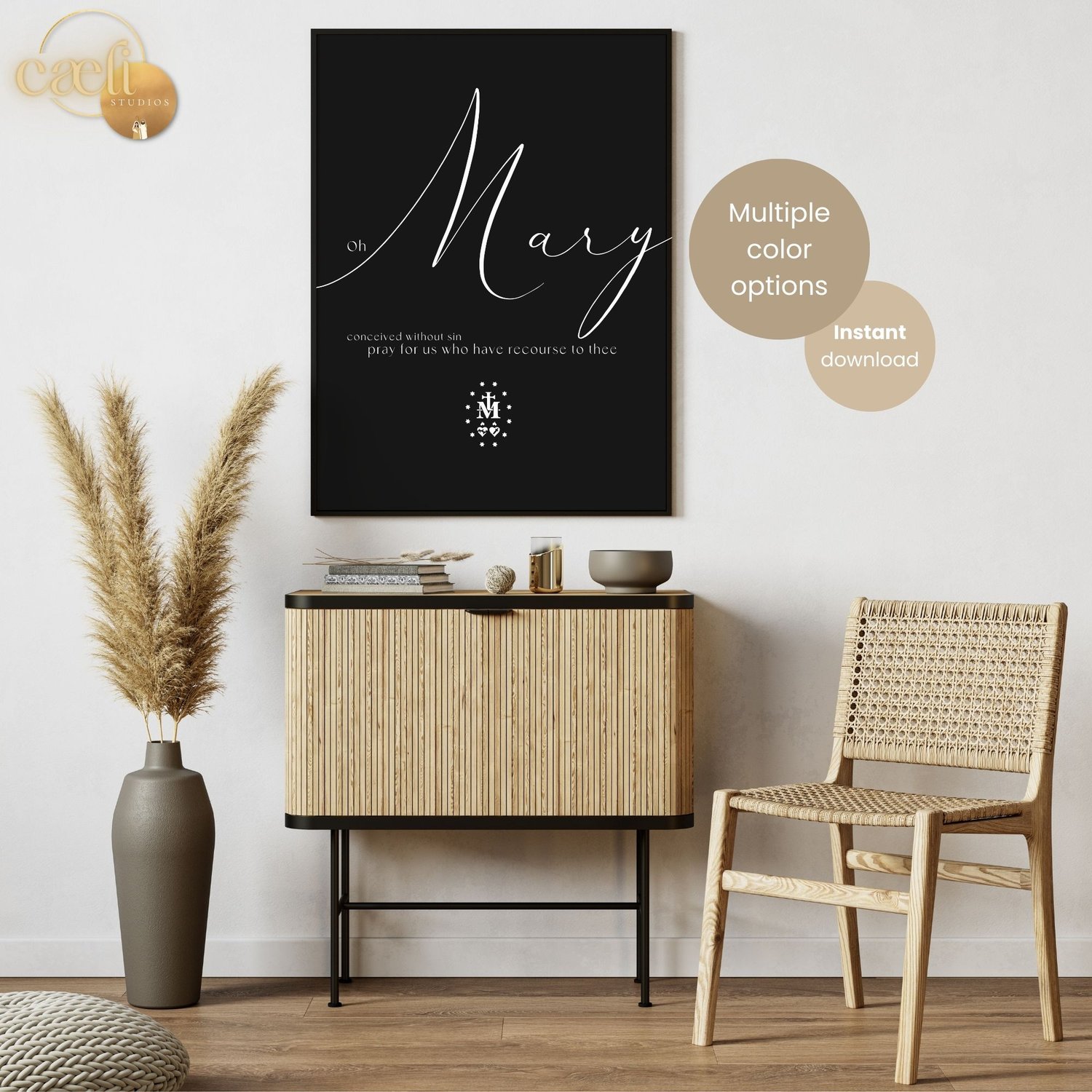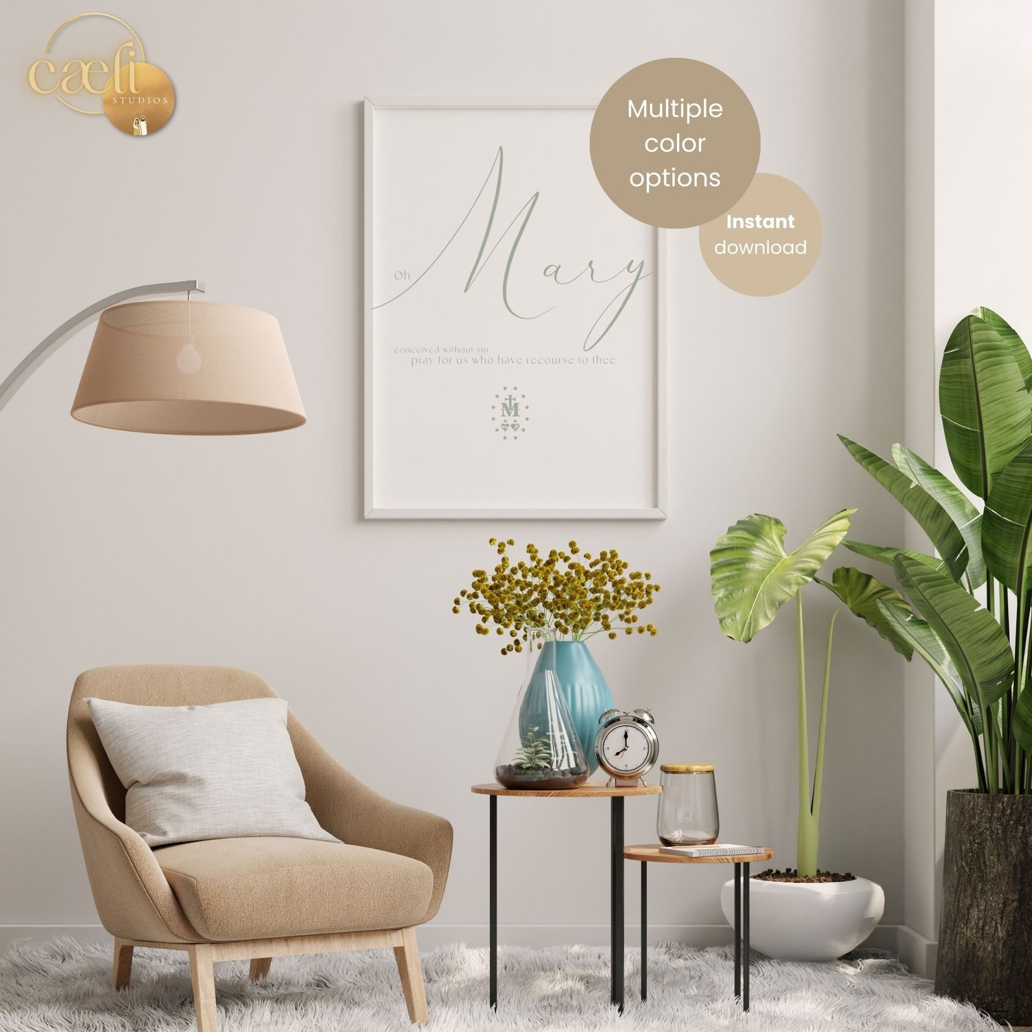 This digital download includes a Miraculous Medal printable wall art design perfect for a modern, minimalist or bohemian Christian home with 9 different color options.