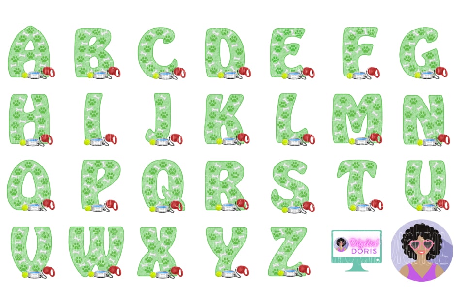 Green Doggy Paw Alphabet Set Digital Download 26 PNGs