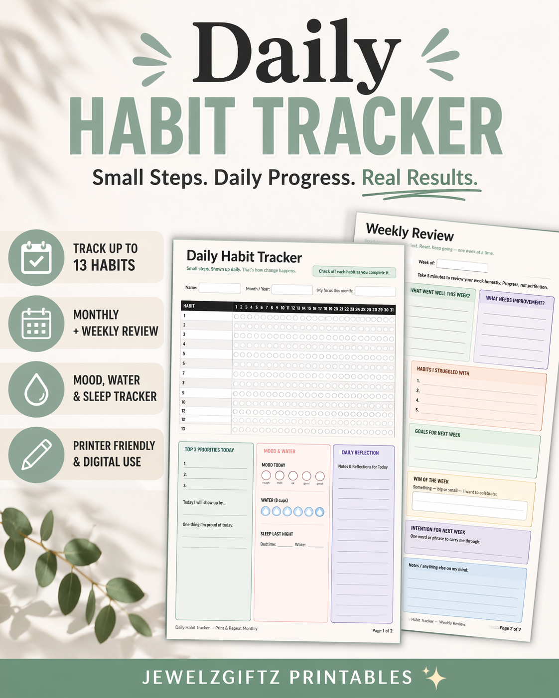 This Daily Habit Tracker Printable is designed to help you build better routines, stay focused, and actually follow through on your goals—one day at a time.