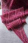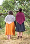 Beginning each half with just a few stitches, this lace shawl is knitted from side to side and constructed in two halves which are joined together after the knitting is complete. Lacy sections are set against opaque garter stitch and waving stocking stitch columns.