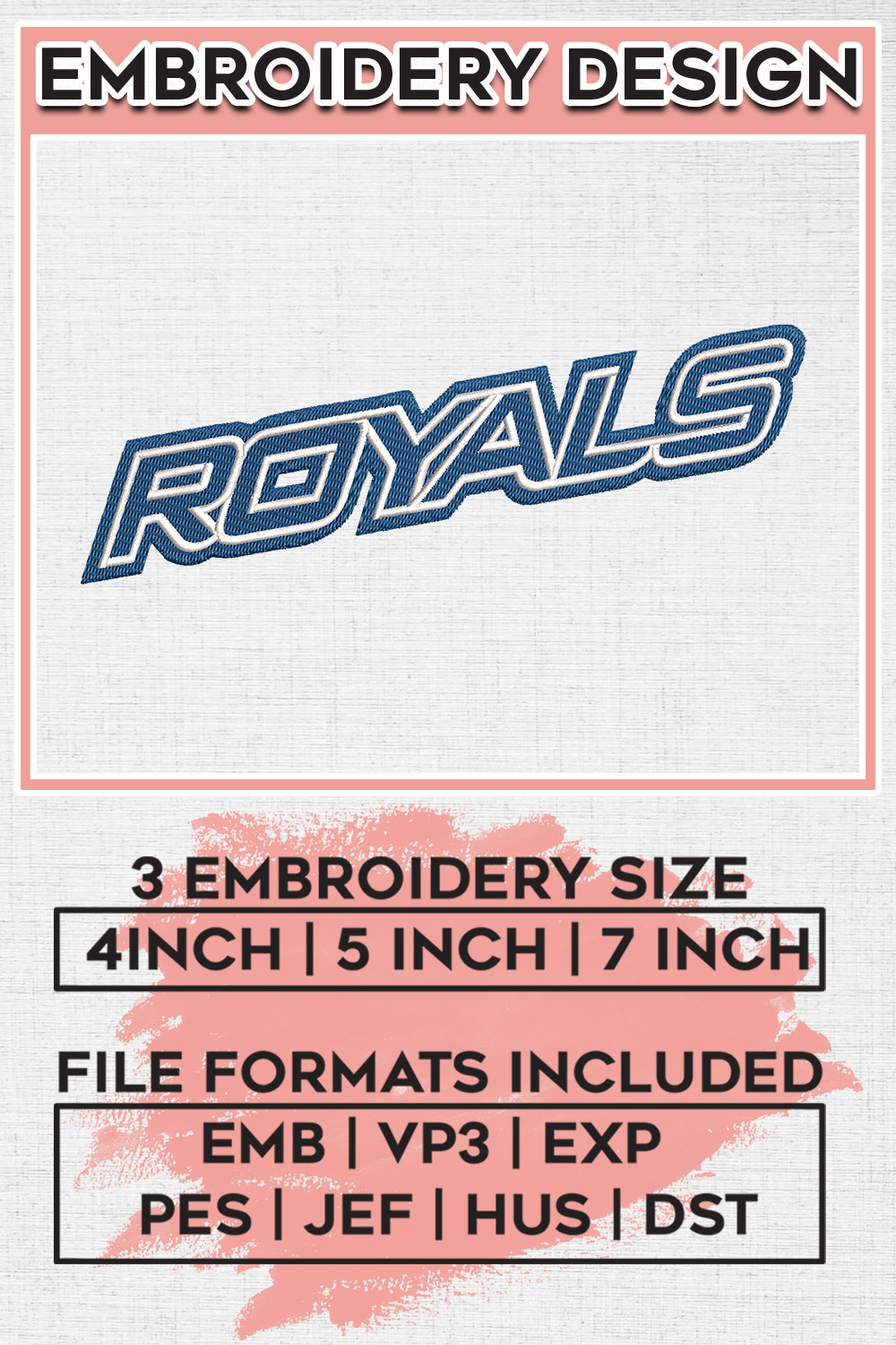 Queens University Royals Football Team Writing Logo Embroidery Designs, NCAA Queens University Royals Machine Embroidery Files, NCAA Logo embroidery designs, Ncaa Royals Logo, Digital Download