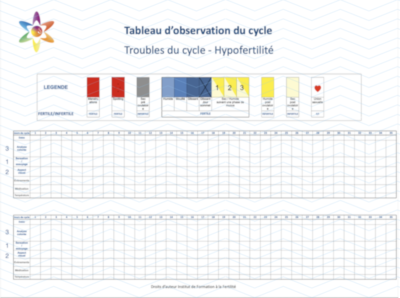 Voici le tableau d'observation qui va te permettre de renseigner chaque jour tes symptômes de glaire.