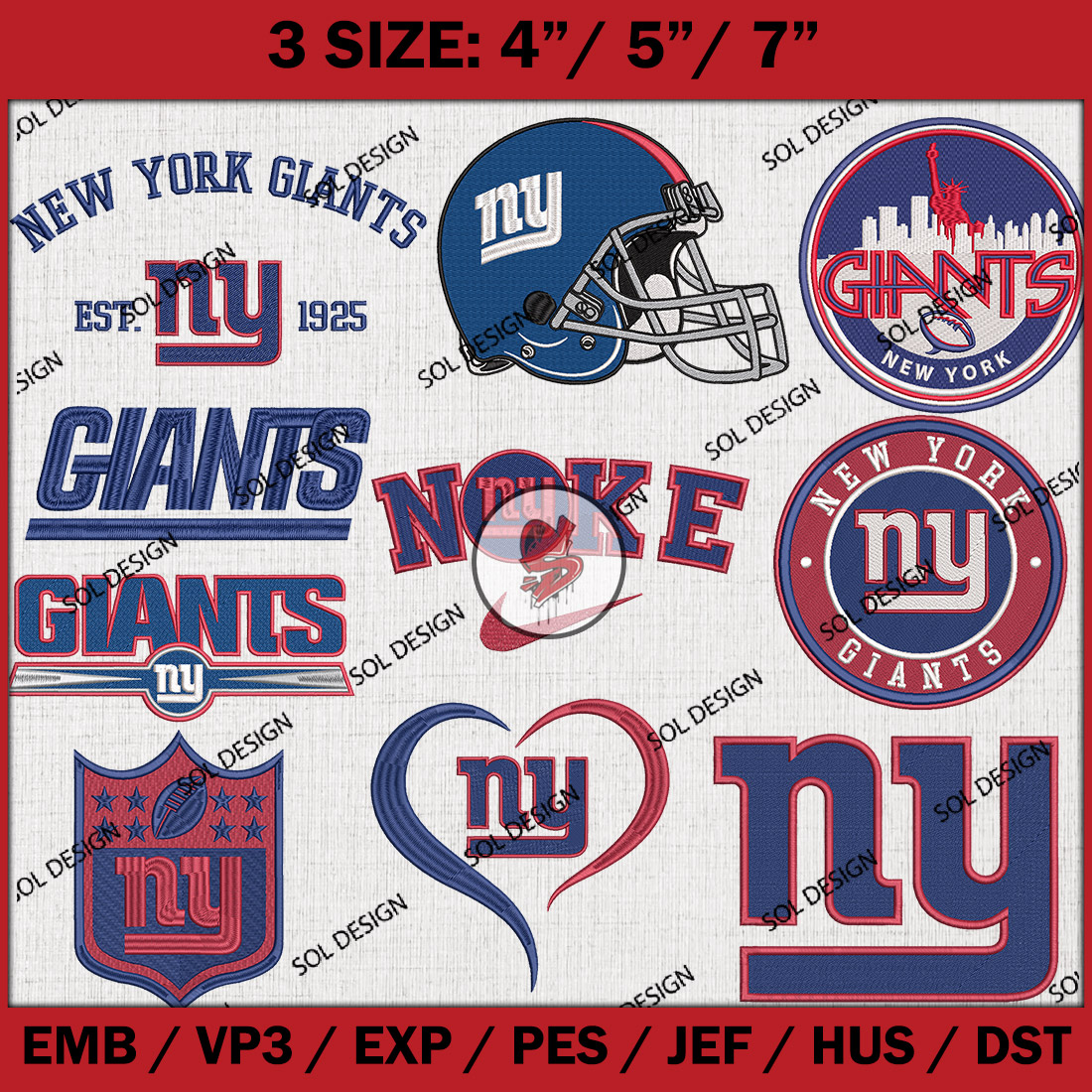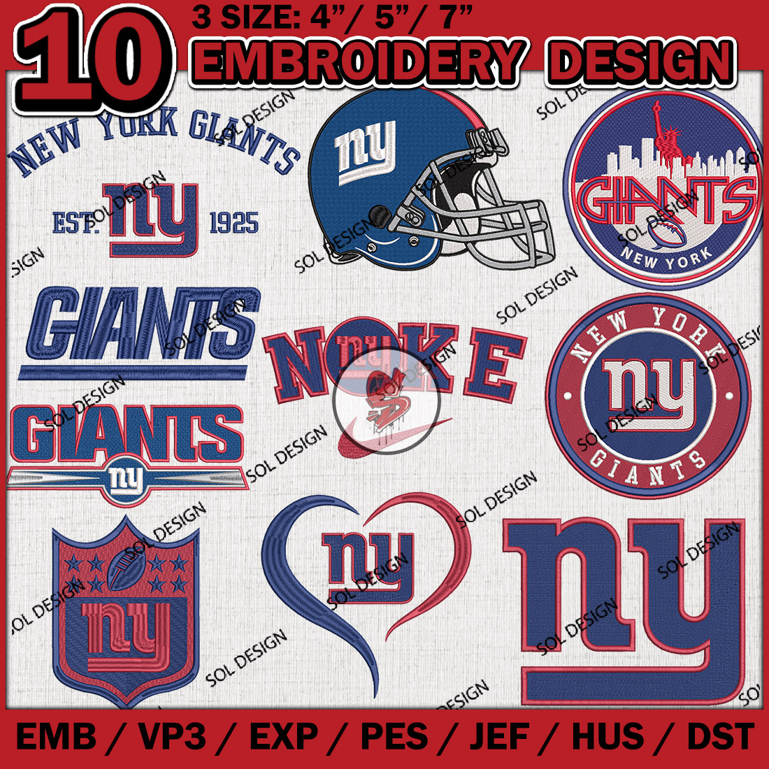 10 New York Giants Embroidery Designs Bundle, NFL Embroidery Designs, NFL New York Giants Machine embroidery Design, NFL Giants, Digital Download