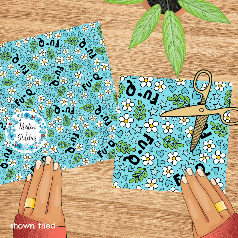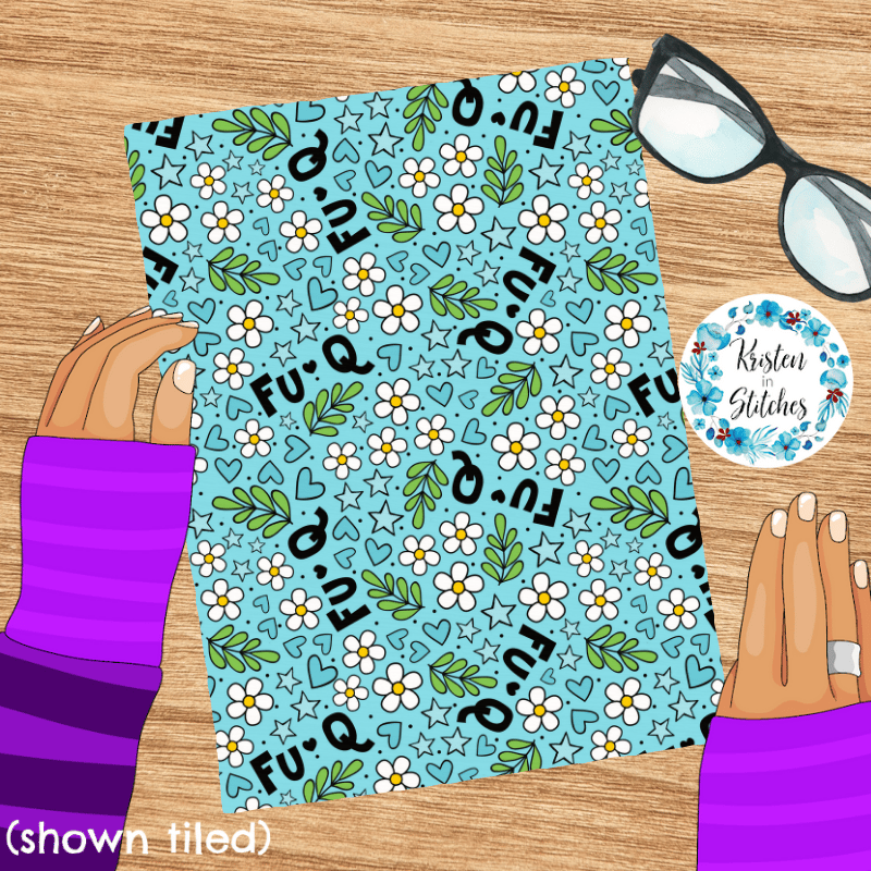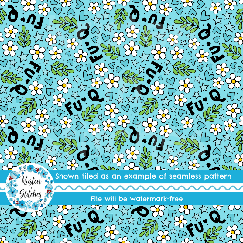 Fu-Q Sarcastic Floral Seamless Pattern, Sassy Words, Blue