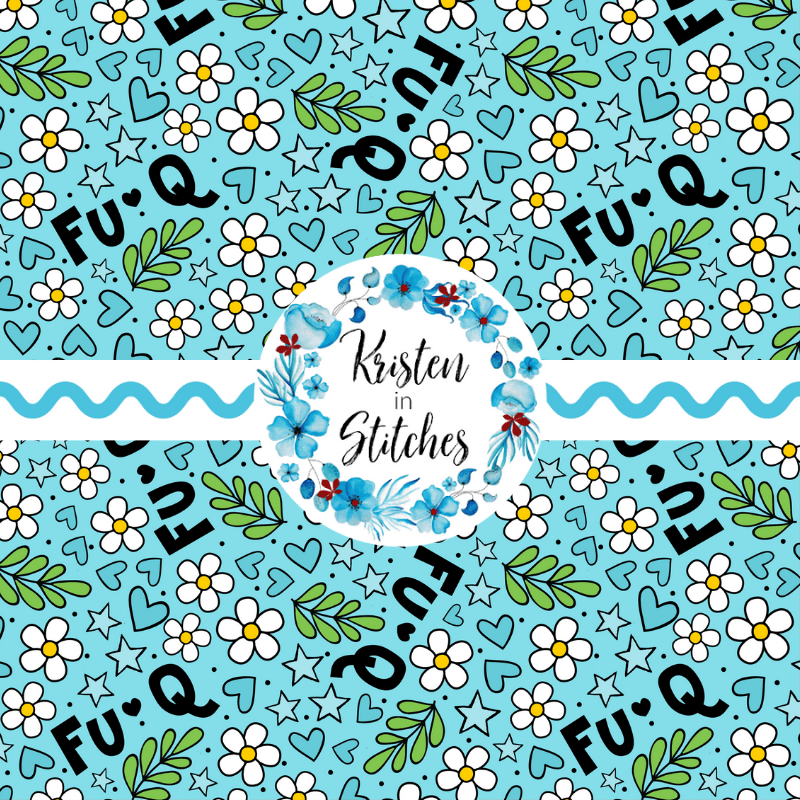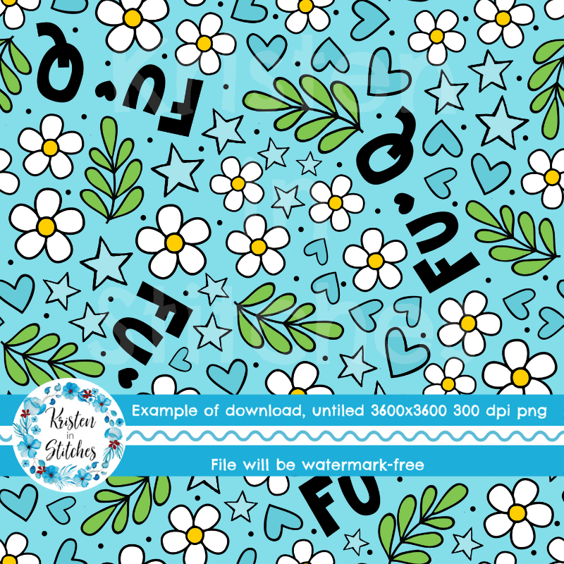 Implied F-words, daisy flowers, stars and hearts.