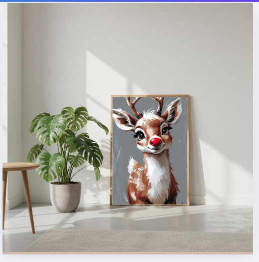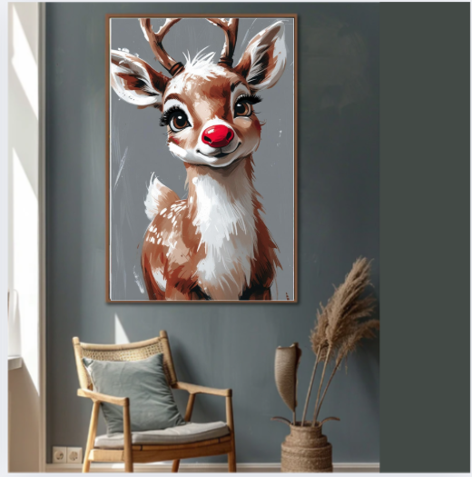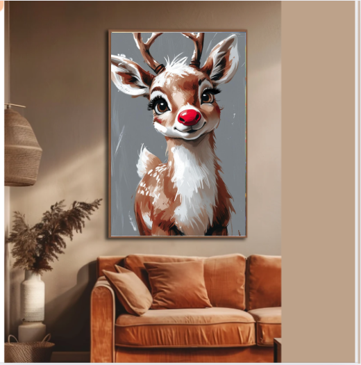 Rudolph Reindeer Digital Wall Art, Holiday Wall Decor, Christmas Wall Art, Festive Home Decor, Digital Printable
