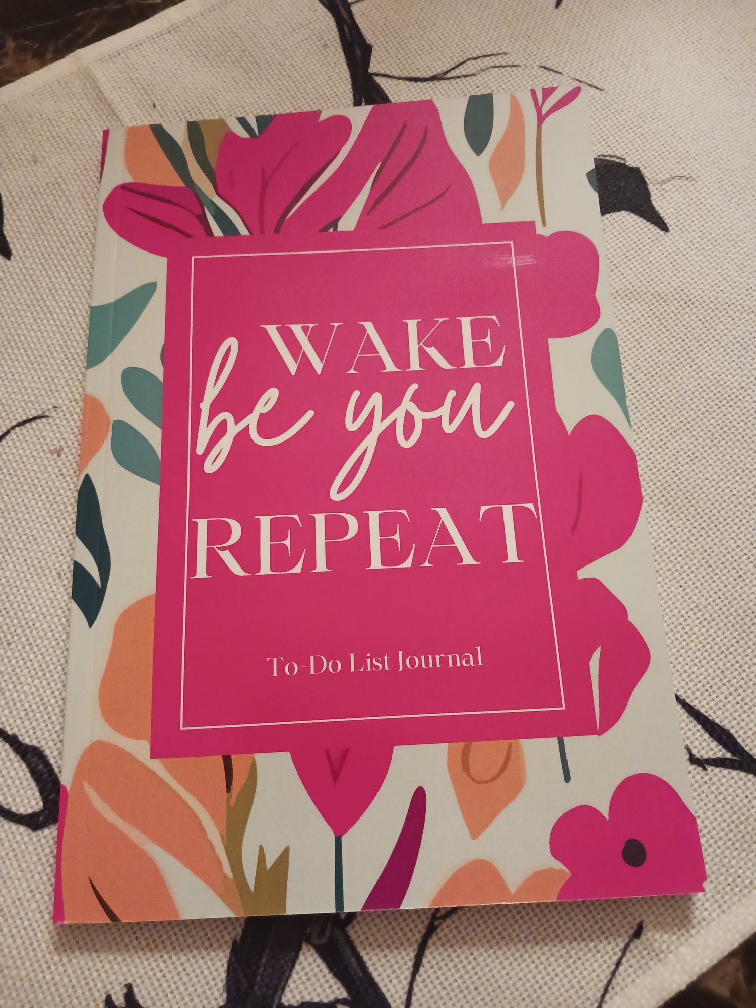 The Wake Be You Repeat To-Do List Journal is a checklist productivity organizer with hourly schedule for task management. This journal is designed to help you stay on track with your daily tasks and priorities. It keeps all your lists in one place. Never miss an important task again. The Wake Be You Repeat To-Do List journal helps you organize tasks efficiently and boost your productivity. Start your day on a positive note, gain clarity, and make steady progress toward your goals.