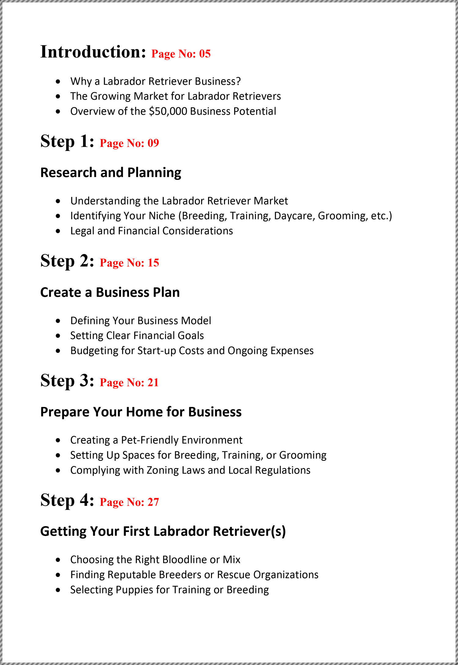 This eBook offers 12 chapters and 67 pages of practical, step-by-step guidance, showing you how to set up a $50,000 Labrador Retriever business right from your home, with expert tips on every stage from planning to scaling your success.