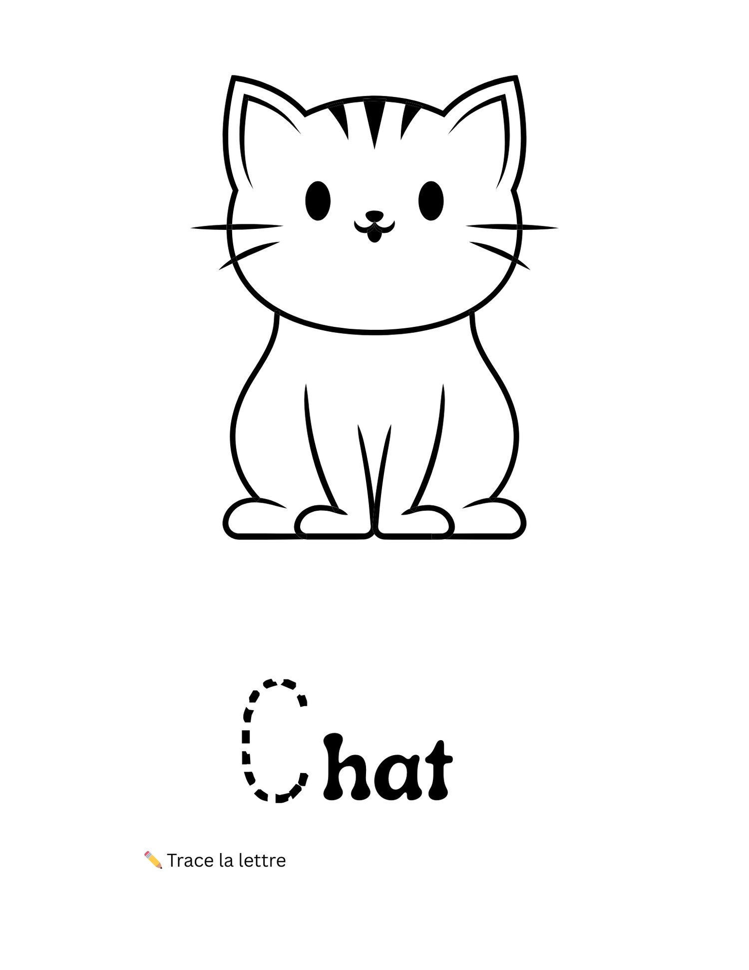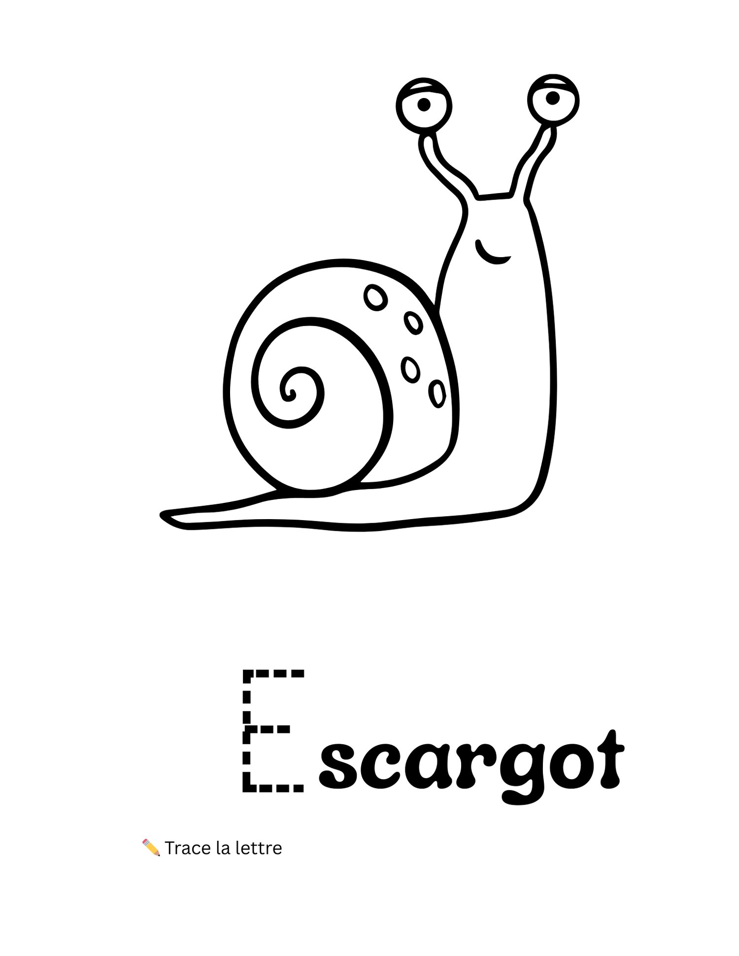 Ce livre de coloriage alphabet à imprimer est idéal pour les enfants de 2 à 5 ans. Chaque page contient une grande lettre majuscule à tracer et une illustration amusante à colorier.