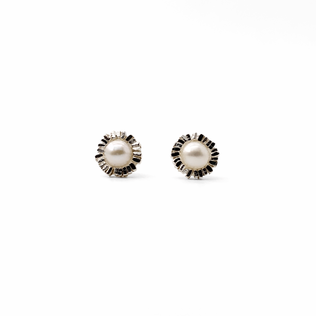 Each petite pearl glows subtly at the center of a handcrafted silver halo—delicate yet striking.