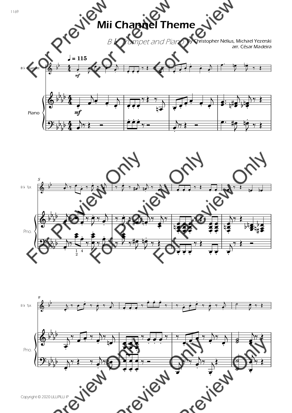 Mii Channel Theme. Arrangement for Bb Trumpet and Piano. With Full Score and Individual Parts. Have fun!