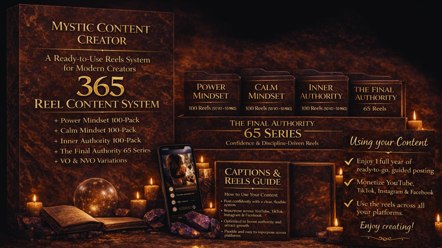 Mystic Content Creator 365 gives you a powerful short-form content system designed for creators, entrepreneurs, coaches and personal brands.